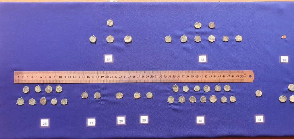 បើតាមការចេញផ្សាយរបស់អាជ្ញាធរជាតិអប្សរា កាលពីថ្ងៃទី២០ ខែតុលា ឆ្នាំ២០២៣ បានឱ្យដឹងថា កាសបុរាណ ដែលគេប្រទះឃើញទាំងនោះ មានបីប្រភេទ ដោយកាសនីមួយៗមានទំហំពី១៣-១៥មីលីម៉ែត្រ មានរូបសត្វ«ហង្ស» មួយបែបទៀតក៏មានរូប«ហង្ស»ដែរ តែលាយដោយអក្សរចិនអានថា«ជី»មានន័យថា«សំណាងល្អ»និងកាសម្យ៉ាងទៀតមានអក្សរថា«ព្រះតំបង» ឯផ្ទៃម្ខាងទៀតមានរូបគ្រុឌ។