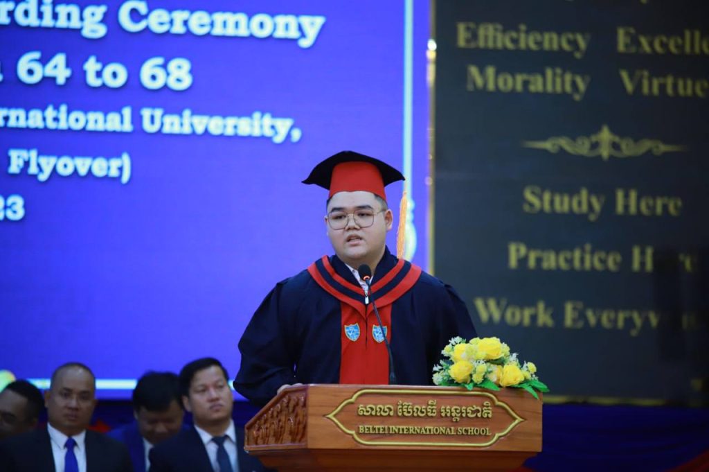 ឯកឧត្តមបណ្ឌិត លី ឆេង បានថ្លែងកោតសរសើរចំពោះក្មួយៗ ដែលបានខិតខំយកចិត្ត ទុកដាក់ប្រឹងប្រែងសិក្សារៀនសូត្រ និងស្តាប់គ្រូពន្យល់ ក៏ដូចជាគោរពបទបញ្ជាផ្ទៃក្នុង មានវិន័យ សីលធម៌ និងគុណធម៌ល្អ មិនបង្កផលលំបាកដល់គ្រួសារ និងសង្គមជាតិ រហូតទទួលបានជោគជ័យក្នុងការប្រឡងបញ្ចប់វគ្គ និងទទួលបានសញ្ញាបត្រ ភាសាអង់គ្លេសប៊ែលធី (BELTEI ESL DIPLOMA) នាពេលនេះ។ ឯកឧត្តមបណ្ឌិត ក៏បានផ្តាំផ្ញើដល់ក្មួយៗ ទាំងអស់ ឱ្យខិតខំយកចិត្តទុកដាក់លើការរៀនសូត្របន្ថែមទៀត ដើម្បីអភិវឌ្ឍសមត្ថភាពផ្ទាល់ខ្លួនក្នុងការចាប់យកអាជីពទៅថ្ងៃអនាគត និងប្រកួតប្រជែងដណ្តើមទីផ្សារការងារ ជាមួយបណ្តាយុវជនទាំងអស់ ទាំងក្នុងតំបន់អាស៊ាន និងពិភពលោកជា ពិសេសដើរ ឱ្យទាន់នូវការរីកចម្រើនផ្នែកបច្ចេកវិទ្យា សម័យបដិវត្តឧស្សាហកម្ម៤.០។