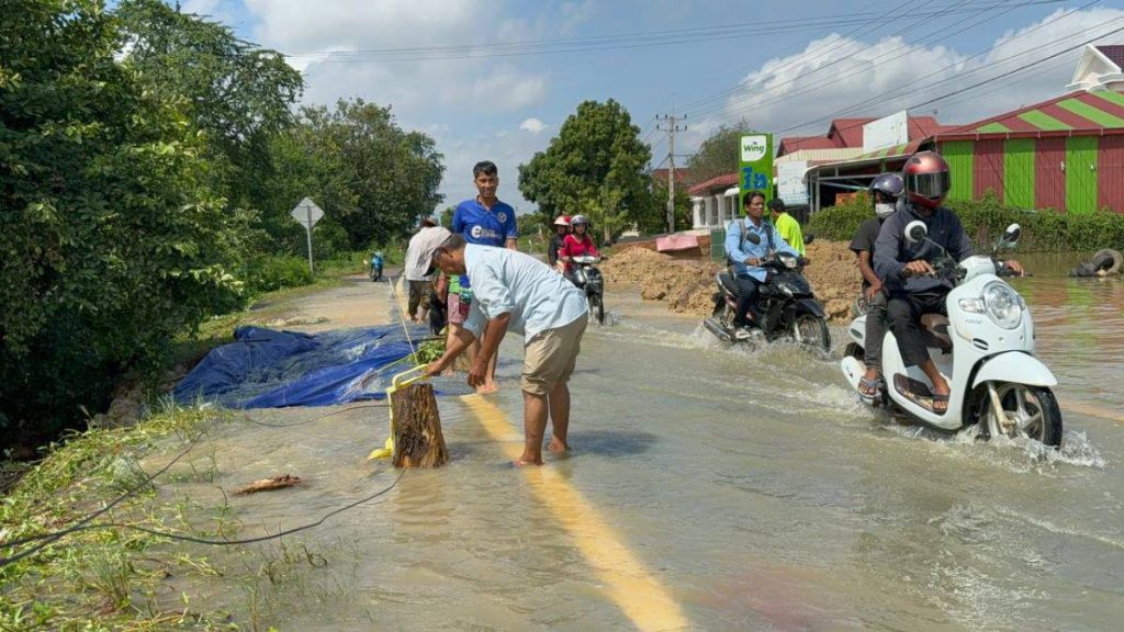 បិទចរាចរណ៍លើកំណាត់ផ្លូវ១០៤ ក្នុងមូលដ្ឋានខណ្ឌដង្កោ ក្រោយទឹកស្ទឹងព្រែកត្នោតហូរកាត់ខ្លាំង