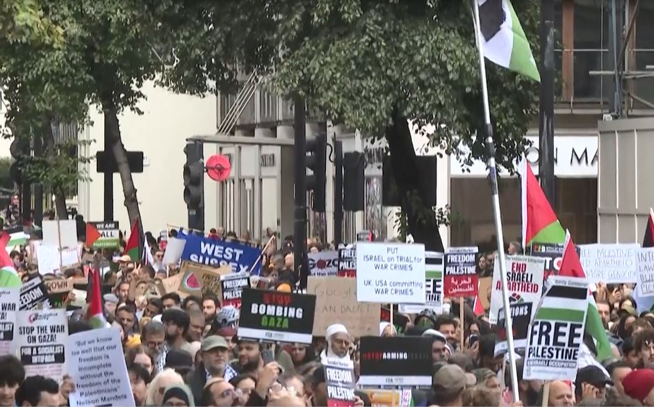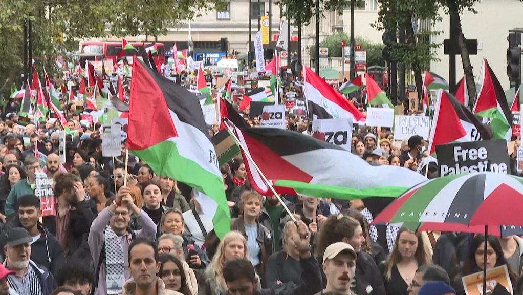 ឡុងដ៍៖ ហ្វូងមនុស្សដ៏ច្រើនសន្ធឹកសន្ធាប់បានធ្វើដំណើរតាមដងផ្លូវ ក្នុងទីក្រុងឡុងដ៍ ដើម្បីអំពាវនាវឱ្យបញ្ចប់ជម្លោះនៅតំបន់ហ្គាហ្សា និងបញ្ចេញសំឡេងគាំទ្រដល់ប៉ាឡេស្ទីន។