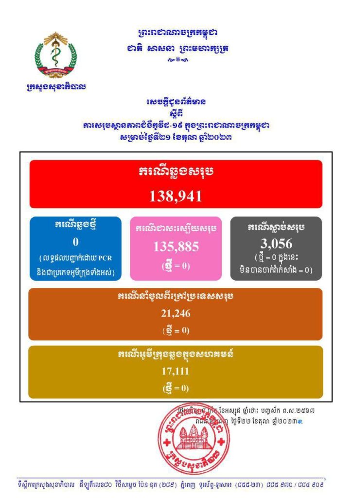 ៤. កូវីដ គ្មានករណីថ្មី គ្មានអ្នកជាសះស្បើយ និងគ្មានអ្នកស្លាប់។
