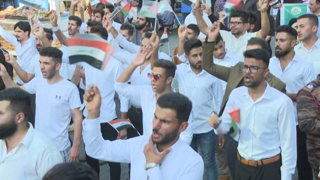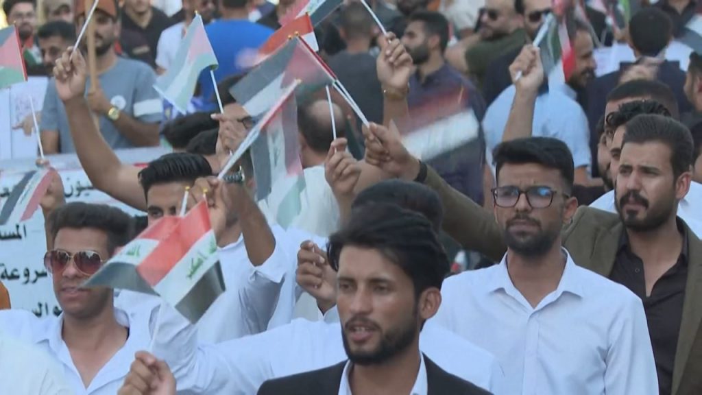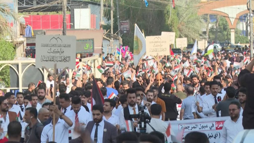 ក្រុមនិសិ្សតរាប់រយនាក់ ចូលរួមក្នុងក្បួនដង្ហែរគាំទ្រប៉ាឡេស្ទីនក្នុងរដ្ឋធានីរបស់ប្រទេសអ៊ីរ៉ាក់