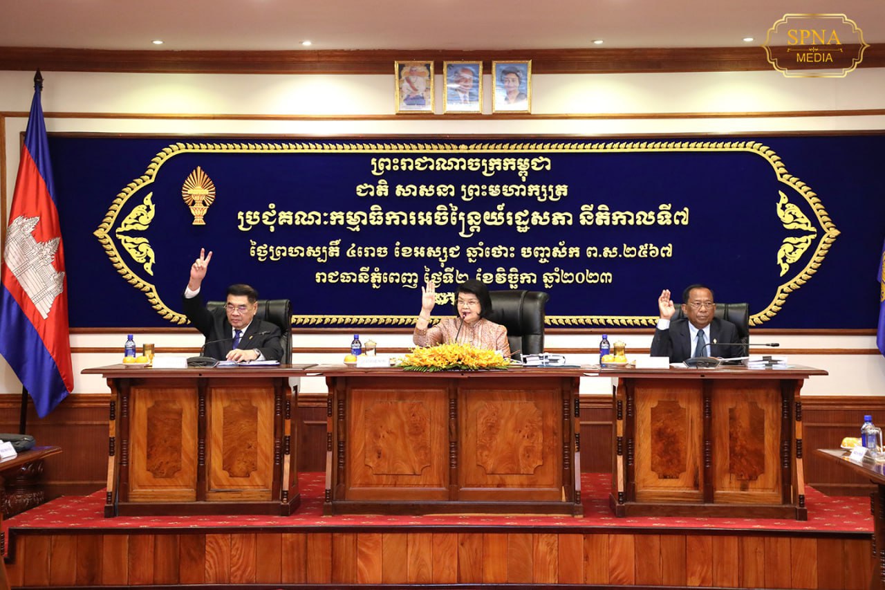 ភ្នំពេញ៖ គណៈកម្មាធិការអចិន្ត្រៃយ៍រដ្ឋសភាបានអនុម័តទទួលយកសេចក្តីព្រាងច្បាប់ចំនួនបី ដែលស្នើឡើងដោយរាជរដ្ឋាភិបាល និងសេចក្តីស្នើវិសោធនកម្មមាត្រាមួយចំនួននៃបទបញ្ជាផ្ទៃក្នុងរដ្ឋសភា មកប្រគល់ជូនគណៈកម្មការជំនាញរដ្ឋសភា ដើម្បីពិនិត្យសិក្សា។ ការទទួលយកទទួលយកសេចក្តីព្រាងច្បាប់ដែលស្នើដោយរាជរដ្ឋាភិបាល និងសេចក្តីស្នើវិសោធនកម្មមាត្រាមួយចំនួននៃបទបញ្ជាផ្ទៃក្នុងរដ្ឋសភា បានធ្វើឡើងនៅក្នុងកិច្ចប្រជុំគណៈកម្មាធិការអចិន្ត្រៃយ៍រដ្ឋសភានៅព្រឹកថ្ងៃទី២ ខែវិច្ឆិកា ឆ្នាំ២០២៣។
