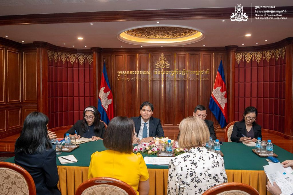 ភ្នំពេញ៖ ក្នុងជំនួបជាមួយសមាជិកគណៈកមា្មធិការ ទទួលបន្ទុកសិទ្ធិ កុមារ របស់អង្គការសហប្រជាជាតិ ចំនួនពីររូបគឺ លោកស្រី Ann Skelton និងលោកស្រី Sopio Kiladze ព្រមទាំង លោកបណ្ឌិត Will Parks តំណាងអង្គការ យូនីសេហ្វ(UNICEF) នៅទីស្តីការក្រសួង នាថ្ងៃទី៦ ខែវិច្ឆិកា ឆ្នាំ២០២៣ ឯកឧត្តម អាន សុខខឿន អនុរដ្ឋលេខា ធិការ នៃក្រសួងការបរទេស និងសហប្រតិបត្តិការអន្តរជាតិ បានបញ្ជាក់ សា ជាថ្មីពីការប្តេជ្ញាចិត្តឥតងាករេ របស់រាជរដ្ឋាភិបាលកម្ពុជា ក្នុងការ អនុវត្ត អនុសញ្ញាស្តីពី សិទ្ធិកុមារ (CRC) និងកិច្ចប្រឹងប្រែងសហការ ជាមួយ គ្រប់ភាគីពាក់ព័ន្ធ រួមទាំង គណៈកម្មាធិការទទួលបន្ទុក សិទ្ធិកុមារ និងអង្គការ UNICEF ដើម្បីលើកកម្ពស់សិទ្ធិរបស់កុមារ រួមមាន សិទ្ធិរស់រានមានជីវិត សិទ្ធិទទួលបានការអភិវឌ្ឍ សិទ្ធិទទួល បានកិច្ចការពារ និងសិទ្ធិចូលរួម។