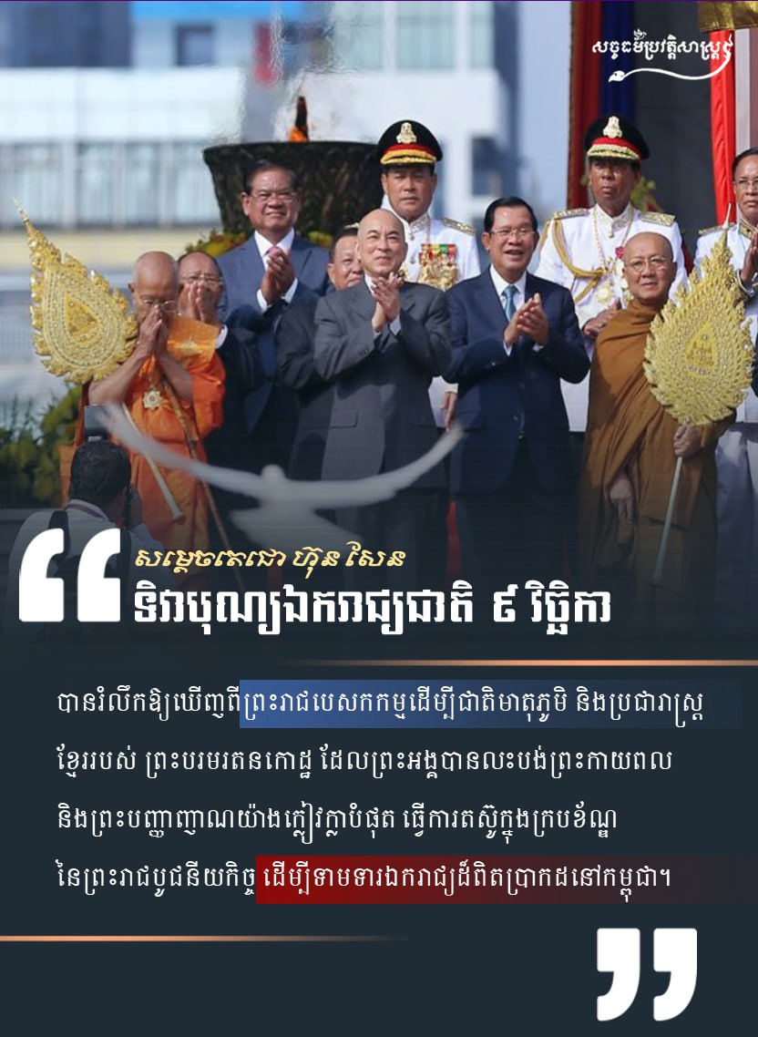 សម្ដេចតេជោ ហ៊ុន សែន “ទិវាបុណ្យឯករាជ្យជាតិ ៩ វិច្ចិកា”ដំណើររបស់កម្ពុជាសច្ចធម៌ប្រវត្តិសាស្ត្រអត្ថបទដោយ៖លី ប៊ុនហេង - Ly Bunheng #សច្ចធម៌ប្រវត្ដិសាស្រ្ដ#ព្រះរាជាណាចក្រកម្ពុជា#ទិវាបុណ្យឯករាជ្យជាតិ #រំលឹកពីព្រះរាជបេសកកម្ម#ដើម្បីជាតិមាតុភូមិ#ប្រជារាស្រ្តខ្មែរ #ព្រះរាជបូជនីយកិច្ច#ដើម្បីទាមទារឯករាជ្យដ៏ពិតប្រាកដនៅកម្ពុជា Facebook Page: សច្ចធម៌ប្រវត្ដិសាស្រ្ដTo all social media លី ប៊ុនហេង - Ly Bunhengលី ប៊ុនហេង ប្រធានផ្នែកផ្សព្វផ្សាយ នៃសច្ចធម៌ប្រវត្តិសាស្រ្ដអត្ថបទមុនអត្ថបទបន្ទាប់