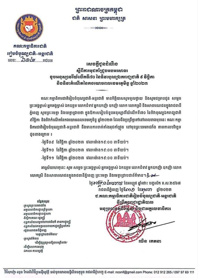 គណៈកម្មាធិការរៀបចំបុណ្យជាតិ-អន្តរជាតិ នឹងរៀបចំអុជកាំជ្រួច ចំនួន ៣ថ្ងៃ