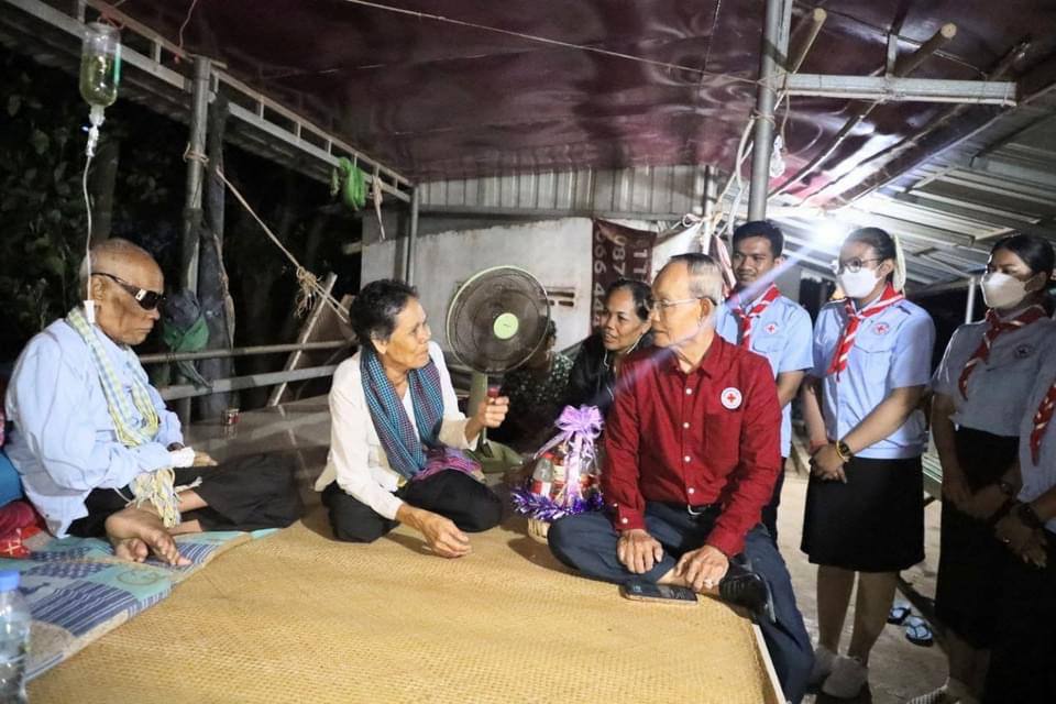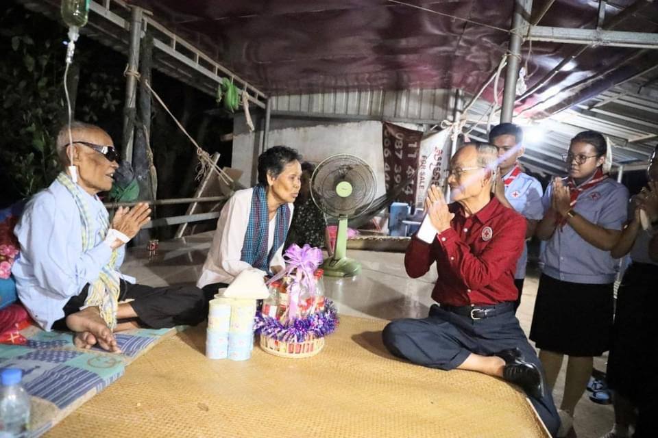កំពត៖ បន្ទាប់ពីទទួលដំណឹងព្រឹទ្ធាចារ្យចាប៉ីដងវែងលោកតា គង់ ណៃ ជំងឺចាស់បានរើឡើងវិញ នៅថ្ងៃទី៩ ខែវិច្ឆិកា ឆ្នាំ២០២៣នេះ សម្តេចកិត្តិព្រឹទ្ធបណ្ឌិត ប៊ុន រ៉ានី ហ៊ុនសែន ប្រធានកាកបាទ ក្រហម កម្ពុជា បានចាត់ឯកឧត្តមវេជ្ជ. អ៊ុយ សំអាត នាយក នាយកដ្ឋាន គ្រប់គ្រងគ្រោះមហន្តរាយ កាកបាទក្រហមកម្ពុជា ព្រឹទ្ធាចារ្យ ចាប៉ីដង វែងលោកតា គង់ ណៃសួរសុខទុក្ខដល់គេហដ្ឋាន ព្រឹទ្ធាចារ្យចាប៉ីដង វែងលោកតា គង់ ណៃ នៅភូមិដូង ឃុំស្វាយទងខាងជើង ស្រុកកំពង់ ត្រាច ខេត្តកំពត។