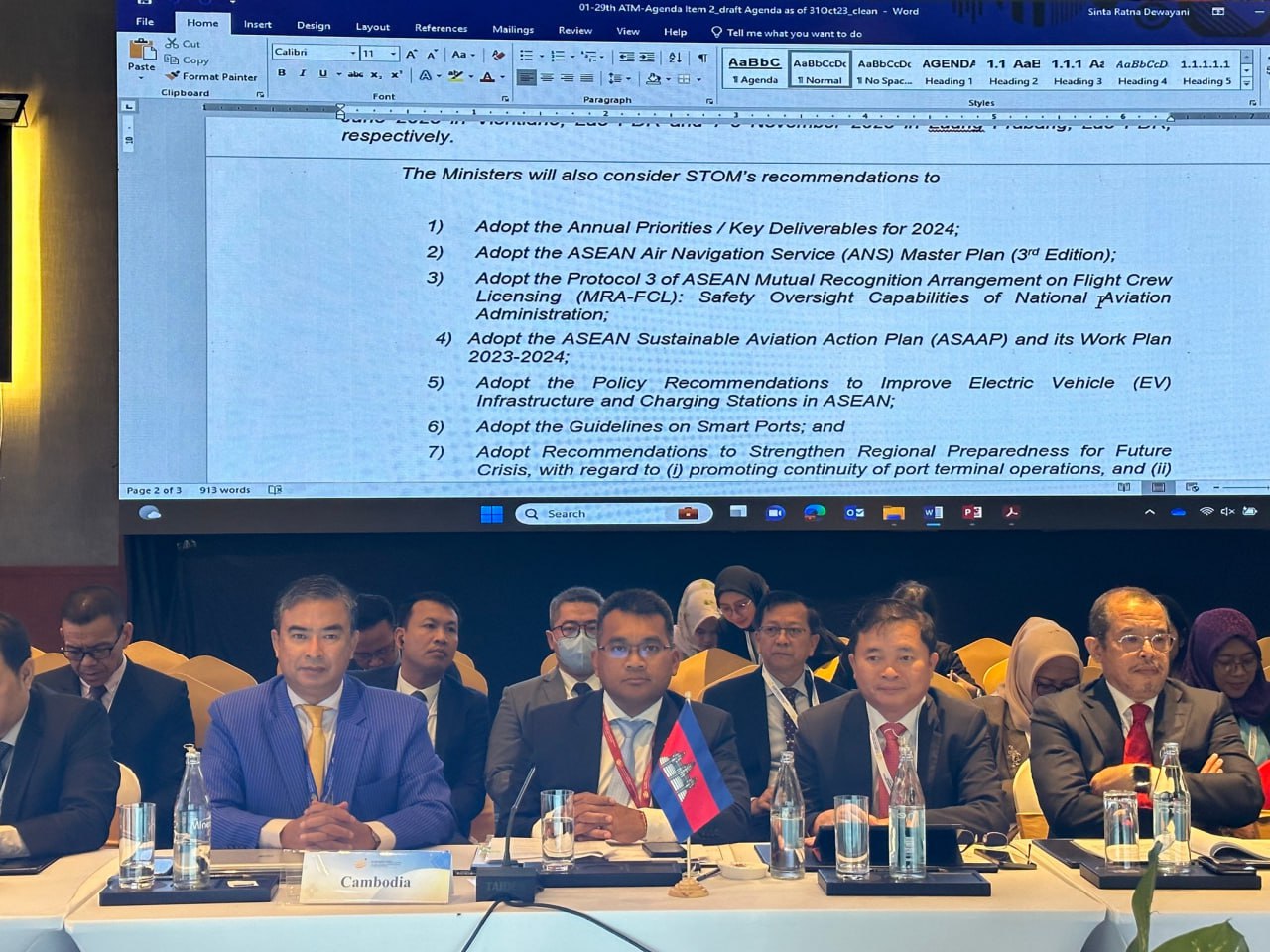 តាមរយៈកិច្ចប្រជុំពេញអង្គលើកទី២៩ ក៏បានអនុម័តនូវឯកសារសំខាន់ៗចំនួន ៧ រួមមាន៖ ១ .ផែនការអាទិភាពប្រចាំឆ្នាំ២០២៤, ២. ផែនការមេអាស៊ាន ស្តីពីសេវាចរាចរដែនអាកាស, ៣.ពិធីសារទី៣ ស្តីពីការទទួលស្គាល់គ្នាទៅវិញទៅមកនូវអាជ្ញាបណ្ណនាវិកហោះហើររបស់អាស៊ាន, ៤. ផែនការសកម្មភាពអាកាសចរណ៍ប្រកបដោយនិរន្តរភាពអាស៊ាន,៥. អនុសាសន៍គោលនយោបាយ សម្រាប់លើកកម្ពស់ ហេដ្ឋារចនាសម្ព័ន្ធ និងស្ថានីយ៍សាកយានយន្តអគ្គិសនី ក្នុងអាស៊ាន ,៦. គោលការណែនាំស្តីពីកំពង់ផែវៃឆ្លាត និង ៧ អនុសាសន៍ស្តីពីការពង្រឹងការត្រៀមខ្លួន ក្នុងតំបន់សម្រាប់បញ្ហាដែលអាចកើតឡើងនាពេលអនាគតទាក់ទងនឹង ការលើកកម្ពស់និរន្តភាពប្រតិបត្តិការរបស់កំពង់ផែ និងការសម្របសម្រួលការផ្លាស់ប្តូរ និងការធ្វើមាតុភូមិនិវត្តន៍របស់នាវិក។