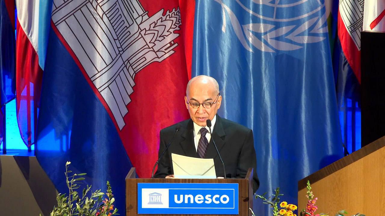 សេចក្ដីប្រកាសព័ត៌មាន ស្ដីពីការយាងចូលរួមរបស់ ព្រះករុណា ព្រះបាទ សម្តេច ព្រះបរមនាថ នរោត្ដម សីហមុនី ព្រះមហាក្សត្រ នៃព្រះរាជាណាចក្រកម្ពុជា នៅក្នុងសន្និសីទអន្តររដ្ឋាភិបាល លើកទី៤ ស្ដីពីអង្គរ និងព្រះរាជសុន្ទរកថារបស់ ព្រះករុណា ព្រះបាទសម្តេច ព្រះបរមនាថ នរោត្ដម សីហមុនី ព្រះមហាក្សត្រ នៃព្រះរាជាណាចក្រកម្ពុជា ជាភាសាខ្មែរ និងបារាំង