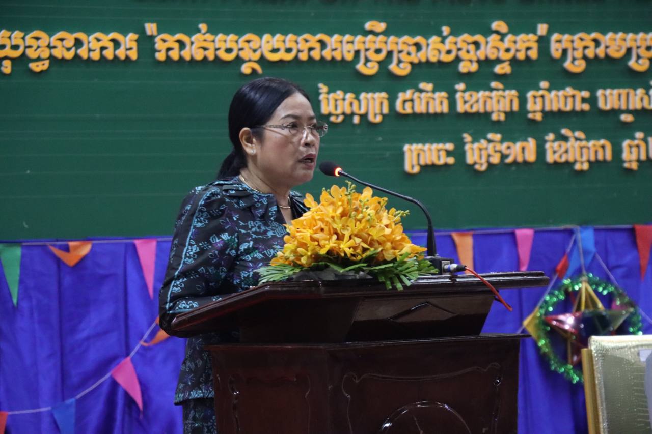 ថ្លែងក្នុងពិធីបើក មហោស្រពសិល្បៈបុណ្យភូមិមានជើង រួមគ្នាដើម្បីទិវាកុមារពិភពលោក,យុទ្ធនាការ”កាត់បន្ថយការប្រើប្រាស់ប្លាស្ទិក”ក្រោមប្រធានបទ”ថ្ងៃនេះខ្ញុំមិនប្រើថង់ប្លាស្ទិកទេ” នៅថ្ងៃទី១៧ ខែ វិច្ឆិកា ឆ្នាំ២០២៣នាសាលមហាស្រព ខេត្ត ក្រចេះ លោក ជំទាវ រដ្ឋលេខាធិការបានឱ្យដឹងថា៖ក្នុងយុទ្ធនាការកាត់បន្ថយការប្រើប្រាស់ថង់ប្លាស្ទិករយៈពេលជាង២ខែមកនេះ មានការចូលរួមពី លោកគ្រូ អ្នកគ្រូមានចំនួនជាង ១០ម៉ឺននាក់ សិស្សានុសិស្សសរុបចំនួនជាង ២,៥លាននាក់ នៃសាលារៀនចំនួនជាង ៦ពាន់សាលា និងកម្មករ/និយោជក ព្រះសង្ឃ និងប្រជាពលរដ្ឋ នៅតាមបណ្ត រោងចក្រ សហគ្រាស វត្តអារាម និងសហគមនានា។