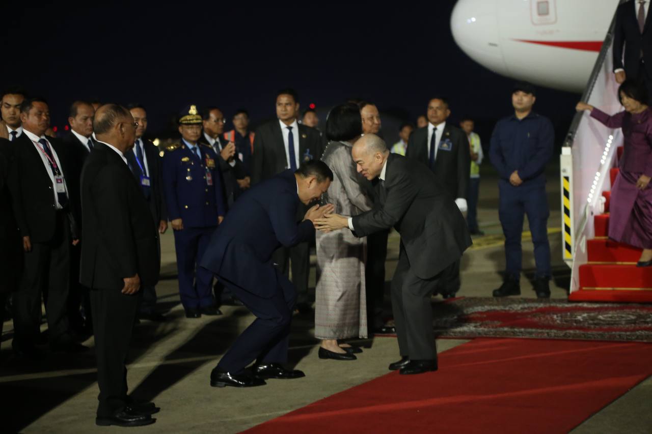 ភ្នំពេញ៖ នៅម៉ោងជាង៧យប់ ថ្ងៃអាទិត្យ ទី១៩ ខែវិច្ឆិកា ឆ្នាំ២០២៣ ព្រះករុណា ព្រះបាទសម្ដេចព្រះបរមនាថ នរោត្ដម សីហមុនី ព្រះមហាក្សត្រ នៃព្រះរាជាណាចក្រកម្ពុជា ជាទីគោរពសក្ការៈដ៏ខ្ពង់ខ្ពស់បំផុត ស្តេចយាងមាតុភូមិនិវត្តន៍ពីសាធារណរដ្ឋបារាំង បន្ទាប់ពីព្រះអង្គសព្វព្រះរាជហឫទ័យយាងបំពេញព្រះរាជទស្សនកិច្ចផ្លូវការ នៅសាធារណរដ្ឋបារាំង ពីថ្ងៃទី១២ ដល់ថ្ងៃទី១៨ ខែវិច្ឆិកា ឆ្នាំ២០២៣។