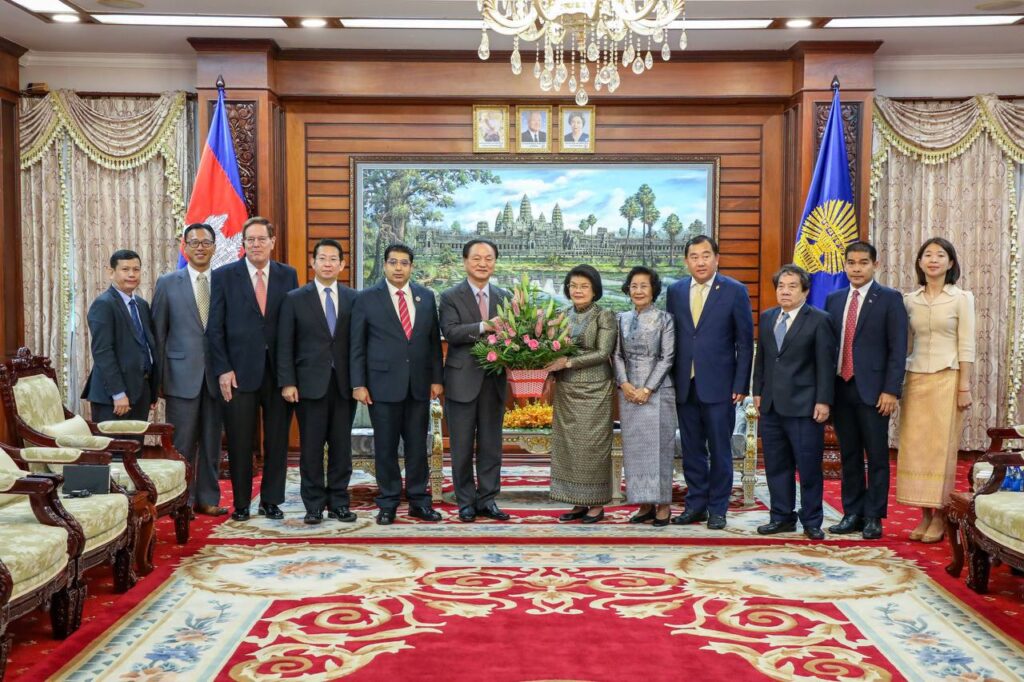 (ភ្នំពេញ)៖ សម្តេចមហារដ្ឋសភាធិការធិបតី ឃួន សុដារី ប្រធានរដ្ឋសភា កម្ពុជា នៅព្រឹកថ្ងៃចន្ទ ទី២០ ខែវិច្ឆិកា ឆ្នាំ២០២៣ នៅវិមានរដ្ឋសភា បានអនុញ្ញាតឱ្យប្រតិភូសហព័ន្ធសន្តិភាពសកល (Universal Peace Federation-UPF) ដឹកនាំដោយ ឯកឧត្តមបណ្ឌិត Charles S. Yang ប្រធានសហព័ន្ធសន្តិភាពសកល (UPF) ជួបសម្តែងការគួរសមនិងពិភាក្សាការងារ ដើម្បីពង្រឹងពង្រីកកិច្ចសហប្រតិបត្តិការរវាងស្ថាប័នទំាងពីរ នៅក្នុងបេសកកម្មស្វែងរកសុខសន្តិភាព និងការអភិវឌ្ឍ ជូនពលរដ្ឋនៅក្នុងតំបន់ ក៏ដូចជានៅលើសកលលោក ។