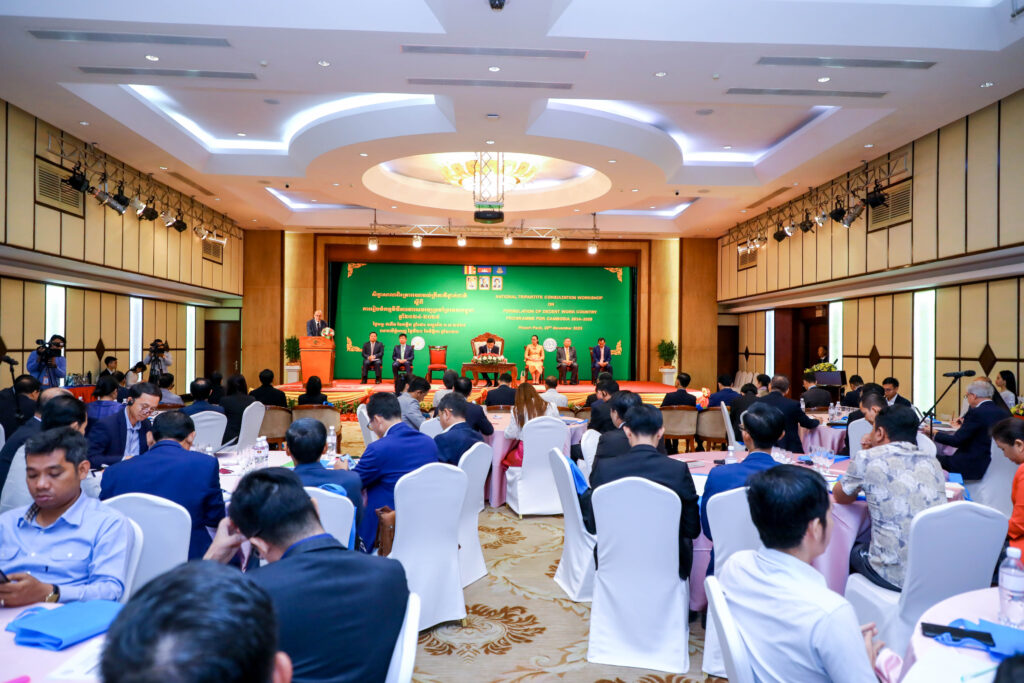 សិក្ខាសាលានេះប្រារព្ធធ្វើឡើងនៅសណ្ឋាគារភ្នំពេញ ដែលមានការចូលរួមពីលោក Oktavianto Pasaribu នាយករងនៃការិយាល័យអង្គការអន្តរជាតិខាងការងារ (ILO) ប្រចាំប្រទេសថៃ កម្ពុជា និងឡាវ ,លោក សំ សឿន ប្រធានក្រុមប្រឹក្សាជាតិសហជីពសម្រាប់កម្មវិធីការងារសមរម្យប្រចាំនៅកម្ពុជា(NTUC) និងលោកឧកញ៉ា សុខ ពិសិដ្ឋ ប្រធានសហព័ន្ធនិយោជក និងសមាគមពាណិជ្ជកម្មកម្ពុជា (CAMFEBA) ។