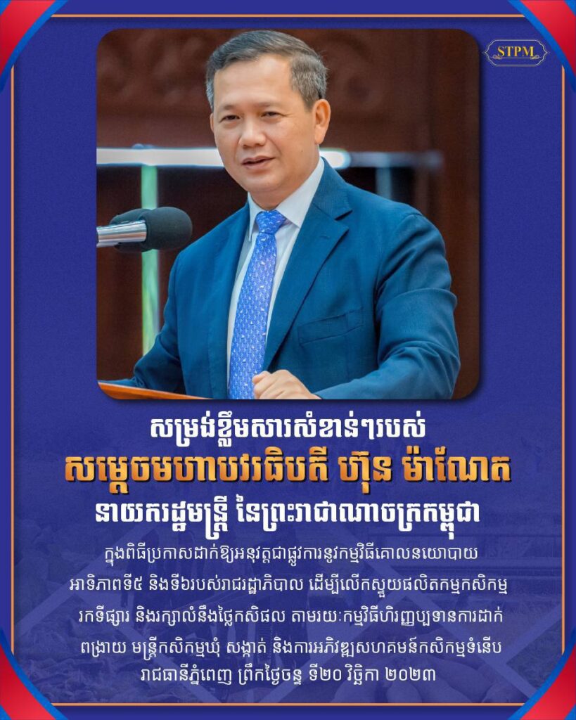 សម្តេចធិបតី ហ៊ុន ម៉ាណែត៖ យើងត្រូវផ្សារភ្ជាប់ពីកសិកម្មតាមបែបគ្រួសារ ទៅជាកសិកម្មបែបឧស្សាហកម្ម