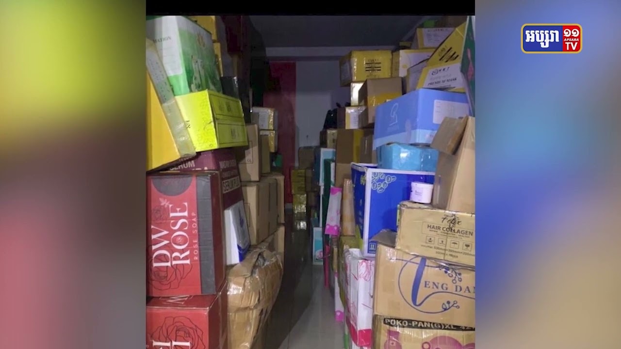 សមត្ថកិច្ចបានរកឃើញ និងដកហូតវត្ថុតាងជាគ្រឿងសម្អាង និងអាហារបំប៉នសរុបចំនួន ៤៨មុខ ទំងន់ ៥ពាន់ ៦៤១គីឡូក្រាម នៅក្នុងនោះមានចំនួន ២៩មុខ ដែលនាំចូលគ្មានច្បាប់។