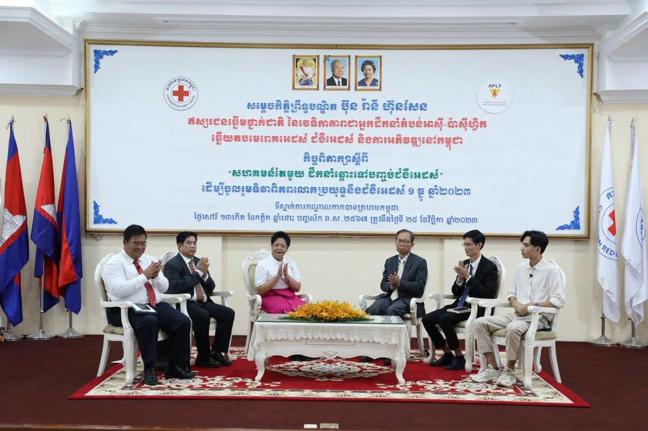 កិច្ចពិភាក្សាស្តីពី «សហគមន៍តែមួយ ដឹកនាំឆ្ពោះទៅបញ្ចប់ជំងឺអេដស៍» ដើម្បីចូលរួមទិវាពិភពលោកប្រយុទ្ធនឹងជំងឺអេដស៍ ១ធ្នូ ឆ្នាំ២០២៣ បានរៀបចំឡើងកាលពីថ្ងៃទី២៥ ខែវិច្ឆិកា ឆ្នាំ២០២៣ នៅទីស្នាក់ការកណ្តាលកាកបាទក្រហមកម្ពុជា រាជធានីភ្នំពេញ។ នេះបើយោងតាមការផ្សព្វផ្សាយរបស់កាកបាទក្រហមកម្ពុជាតាមរយៈប្រព័ន្ធហ្វេសប៊ុក។
