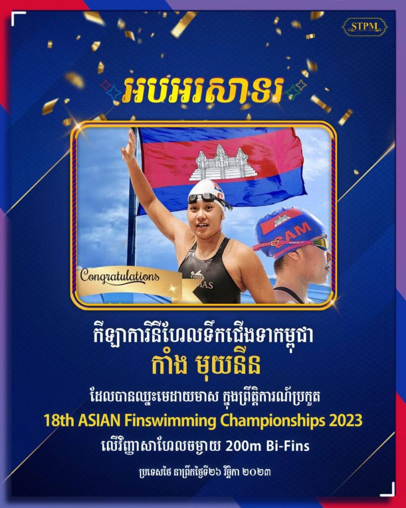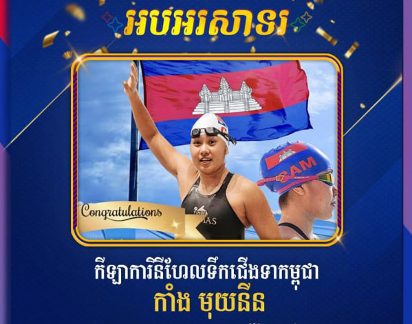 អបអរសាទរ កីឡាការិនីហែលទឹកជើងទាកម្ពុជា កាំង មុយនីន ដែលបានឈ្នះមេដាយមាស