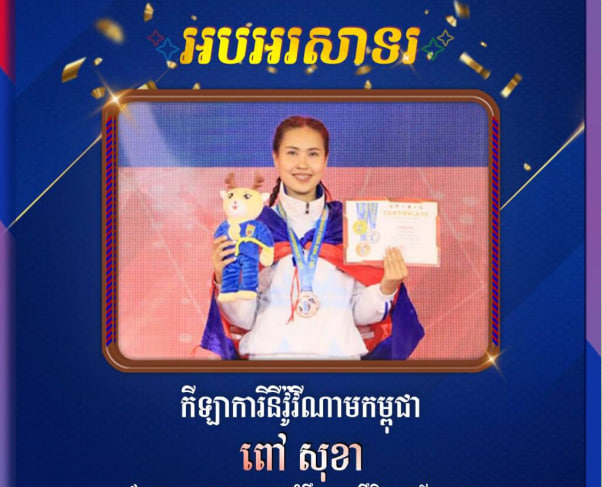 អបអរសាទរ កីឡាការិនីវ៉ូវីណាមកម្ពុជា ពៅ សុខា ដែលបានឈ្នះមេដាយសំរឹទ្ធ