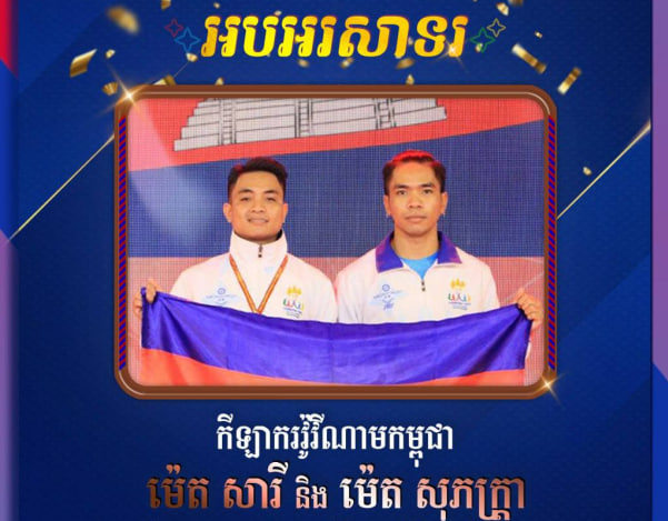 អបអរសាទរ កីឡាករវ៉ូវីណាមកម្ពុជា ម៉េត សារី និង ម៉េត សុភក្រ្តា ដែលបានឈ្នះមេដាយសំរឹទ្ធក្នុងព្រឹត្តិការណ៍ប្រកួត