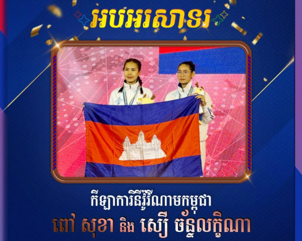 អបអរសាទរ កីឡាការិនីវ៉ូវីណាមកម្ពុជា ពៅ សុខា និង សឿ ច័ន្ទលក្ខិណា ដែលបានឈ្នះមេដាយសំរឹទ្ធ