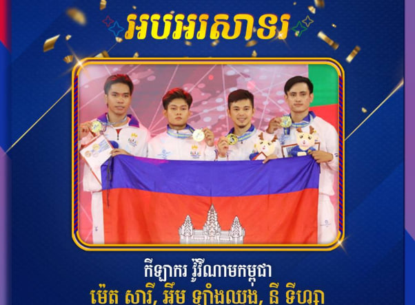 អបអរសាទរ កីឡាករ វ៉ូវីណាមកម្ពុជា ម៉េត សារី, អុឹម ឡាំងឈុង, នី ទីហ្សា និង ម៉ែន សុខវិច្ឆិកា ដែលបានឈ្នះមេដាយមាស