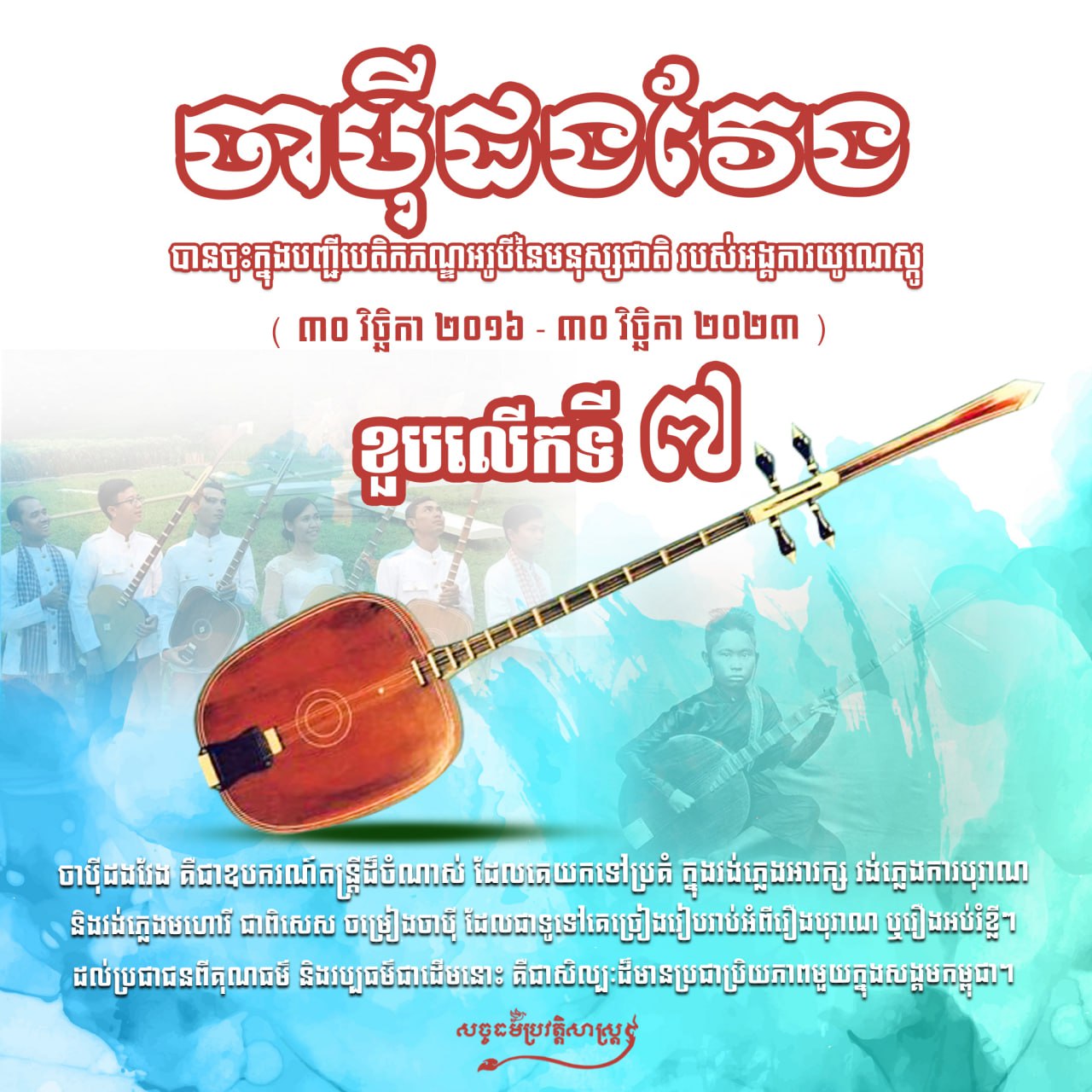 អបអរសាទរ ខួបលើកទី៧ នៃការដាក់បញ្ចូលចាប៉ីដងវែងទៅក្នុងបញ្ជីបេតិកភណ្ឌអរូបីនៃមនុស្សជាតិ របស់អង្គការយូណេស្គូដំណើររបស់កម្ពុជាសច្ចធម៌ប្រវត្តិសាស្ត្រអត្ថបទដោយ៖លី ប៊ុនហេង - Ly Bunheng #សច្ចធម៌ប្រវត្ដិសាស្រ្ដ #ព្រះរាជាណាចក្រកម្ពុជា #ខ្លីៗងាយយល់ #ចាប៉ីដងវែង #ឧបករណ៍ភ្លេងបុរាណខ្មែរ #បេតិកភណ្ឌវប្បធម៌អរូបីនៃមនុស្សជាតិ Facebook Page: សច្ចធម៌ប្រវត្ដិសាស្រ្ដTo all social media លី ប៊ុនហេង - Ly Bunhengលី ប៊ុនហេង ប្រធានផ្នែកផ្សព្វផ្សាយ នៃសច្ចធម៌ប្រវត្តិសាស្រ្ដអត្ថបទមុនអត្ថបទបន្ទាប់