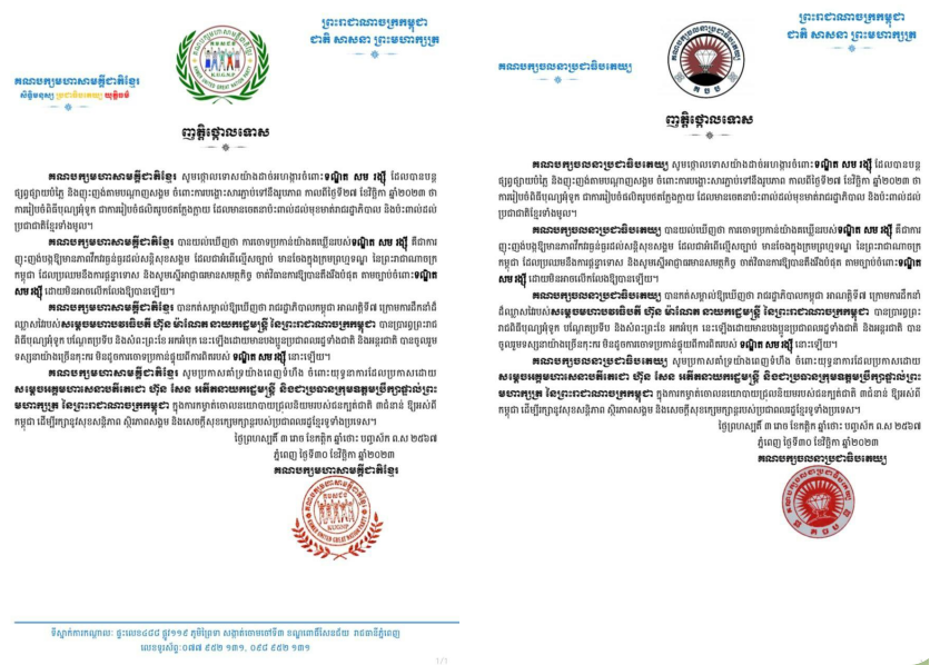 គណបក្សមហាសាមគ្គីជាតិខ្មែរ និងគណបក្សចលនាប្រជាធិបតេយ្យ ថ្កោលទោសទណ្ឌិត សម រង្ស៊ី ដែលបន្តផ្សព្វផ្សាយបំភ្លៃ និងញុះញង់