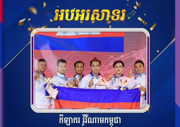 អបអរសាទរ កីឡាករវ៉ូវីណាមកម្ពុជា សាន សុជាតិ, ជិន ពិសដ្ឋ, ជ្រិន ប៊ុនឡង, ម៉េត សុភ័ក្រ្តា, ម៉េត សារី និង នី ទីហ្សា ដែលបានឈ្នះមេដាយប្រាក់