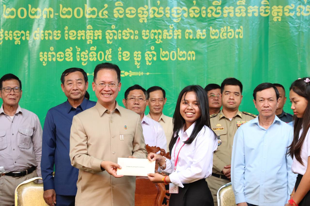 នាឱកាសនោះ ឯកឧត្តមបណ្ឌិត អ៊ាង សុផល្លែត បានឧបត្ថម្ភថវិកាជូនប្រធាន អនុប្រធានការិយាអប់រំយុវជន និងកីឡាស្រុក ៣នាក់ ក្នុងម្នាក់ថវិកា ១០ម៉ឺនរៀល, នាយក នាយករងវិទ្យាល័យ ៨នាក់ ក្នុងម្នាក់ ថវិកា១០ម៉ឺនរៀល, លោកគ្រូ អ្នកគ្រូ បង្រៀនវិទ្យាល័យចំនួន១០នាក់ ក្នុងម្នាក់ថវិកា ១០ម៉ឺនរៀល, សិស្សប្រឡងជាប់និទ្ទេស A ចំនួន៩នាក់ ក្នុងម្នាក់ថវិកា ២លានរៀល, សិស្សចំណាត់ថ្នាក់លេខ១ ដល់លេខ៥ ចំនួន២២០នាក់ ក្នុងម្នាក់ថវិកា ១ម៉ឺនរៀល, សិស្សានុសិស្សដែលជាប់ និងធ្លាក់ចំនួន ៤៧០នាក់ ក្នុងម្នាក់ ៥ម៉ឺនរៀល សមាជិកអចិន្ត្រៃយ៍គណបក្សស្រុក ១៧នាក់ ក្នុងម្នាក់ ១០ម៉ឺនរៀល និងមេឃុំទាំង៧ ក្នុងម្នាក់ ១០ម៉ឺនរៀលផងដែរ ៕