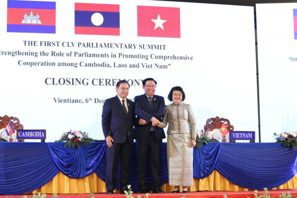 ប្រធានរដ្ឋសភាកម្ពុជា ឡាវ និងវៀតណាម ប្តេជ្ញាចិត្តក្នុងការពង្រឹង និងពង្រីកលើកិច្ចសហប្រតិបត្តិការ និងភាពជាដៃគូរបស់សភា ហើយជំរុញកិច្ចសហប្រតិបត្តិការលើវិស័យនយោបាយ ការពារជាតិ សន្តិសុខ វប្បធម៌ និងសេដ្ឋកិច្ច សម្រាប់អភិវឌ្ឍន៍សេដ្ឋកិច្ចសង្គម និងអនុវត្តតួនាទីត្រួតពិនិត្យ ក្នុងការចូលរួមដោះស្រាយបញ្ហាប្រឈមដែលនៅសេសសល់ក្នុងតំបន់ត្រីកោណអភិវឌ្ឍន៍ (CLV)។