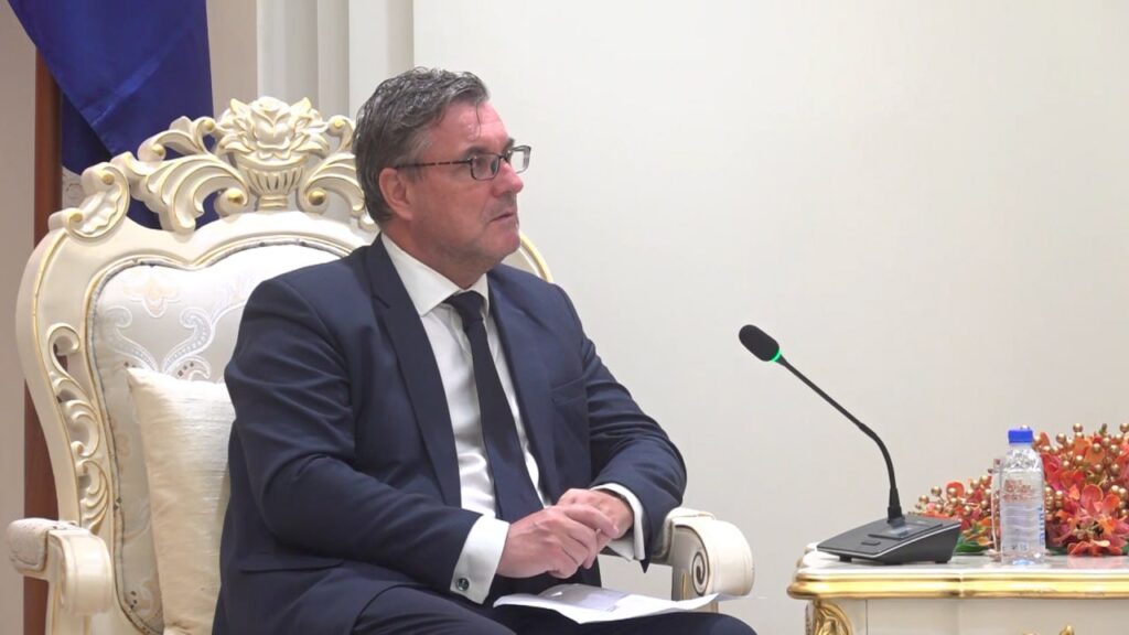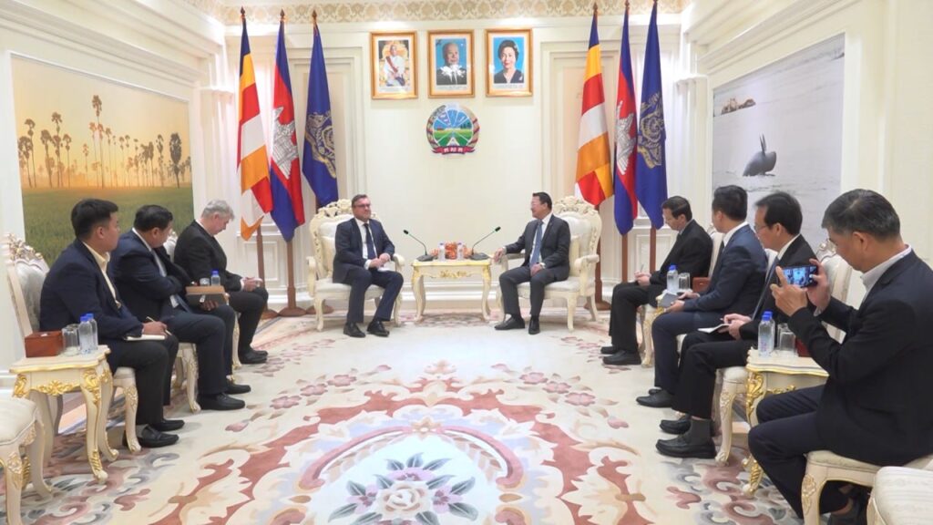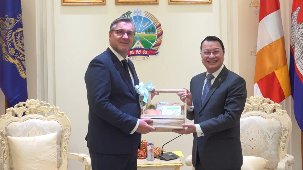 (ភ្នំពេញ) ៖ ឯកឧត្តម ឌិត ទីណា រដ្ឋមន្ត្រីក្រសួងកសិកម្ម រុក្ខាប្រមាញ់ និងនេសាទ បានទទួលជួបសម្តែងការគួរសម និងពិភាក្សាការងារជាមួយ ឯកឧត្តម Martin V’avra ឯកអគ្គរដ្ឋទូតនៃសាធារណរដ្ឋឆេក ប្រចាំកម្ពុជា នៅទីស្តីការក្រសួងកសិកម្ម កាលពីថ្ងៃទី៧ ខែធ្នូ ឆ្នាំ២០២៣ ។