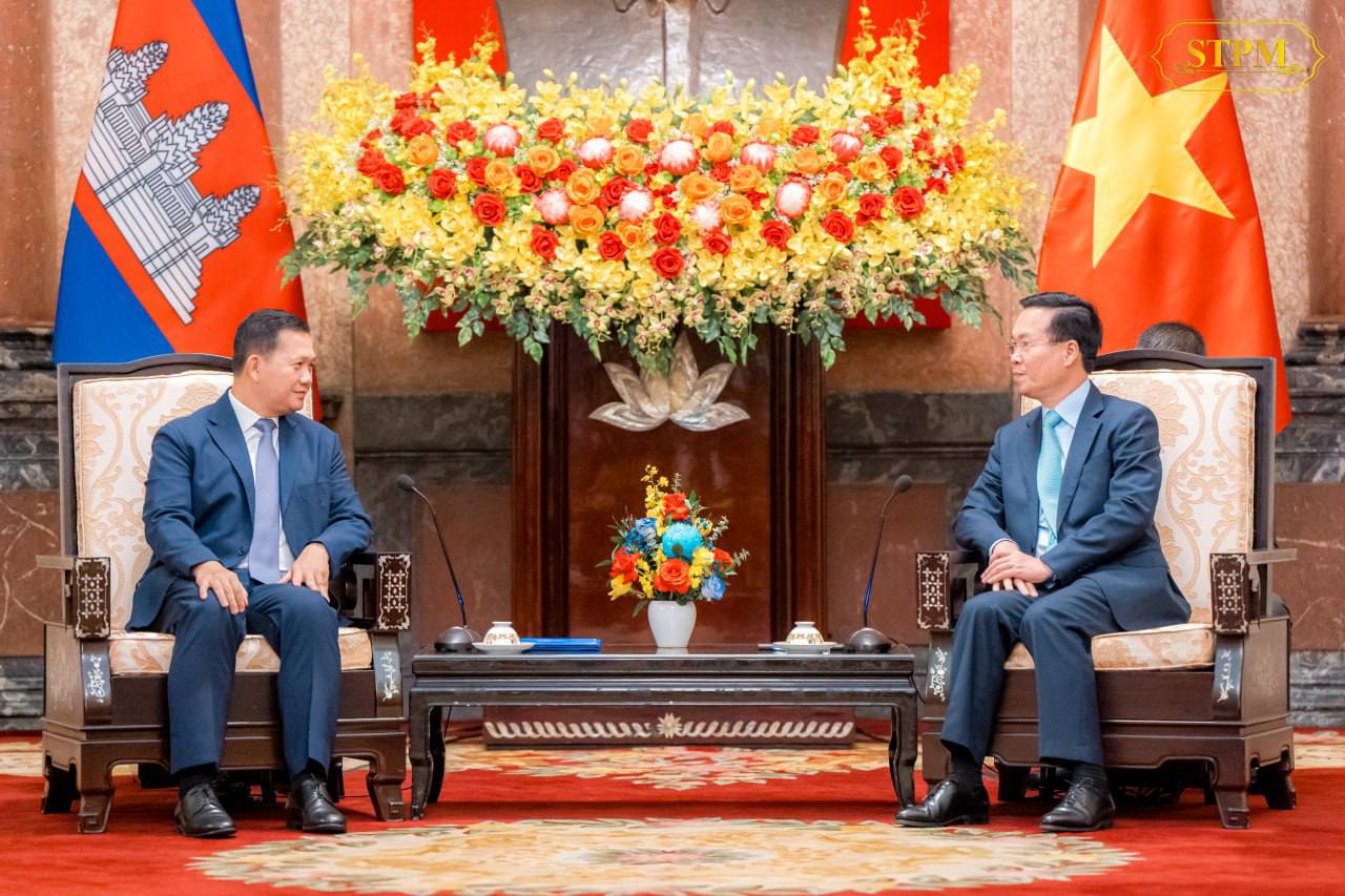 រដ្ឋធានីហាណូយ៖ ក្នុងជំនួបសម្តែងការគួរសម នៃដំណើរបំពេញទស្សនកិច្ចផ្លូវការរយៈពេល ០២ ថ្ងៃ ចាប់ពីថ្ងៃទី១១ ដល់ថ្ងៃទី១២ ខែធ្នូ ឆ្នាំ២០២៣ នៅសាធារណរដ្ឋសង្គមនិយមវៀតណាម នារសៀលថ្ងៃទី១១ ខែធ្នូ ឆ្នាំ២០២៣ សម្តេចមហាបវរធិបតី ហ៊ុន ម៉ាណែត នាយករដ្ឋមន្ត្រី នៃព្រះរាជាណាចក្រកម្ពុជា បានជម្រាបជូនឯកឧត្តម វ៉ វ៉ាន់ធឿង (Vo Van Thuong) ប្រធានរដ្ឋ នៃសាធារណរដ្ឋសង្គមនិយមវៀតណាម ថា អំពីលទ្ធផលប្រកបដោយផ្លែផ្កានៃកិច្ចប្រជុំពិភាក្សាជាមួយនឹង ឯកឧត្តមនាយករដ្ឋមន្ត្រីវៀតណាម ដោយក្នុងនេះ កម្ពុជា-វៀតណាម នឹងបង្កើនកិច្ចសហប្រតិបត្តិការក្នុងវិស័យសំខាន់ៗជាច្រើន ជាពិសេសការបង្កើតនូវយន្តការកិច្ចសហប្រតិបត្តិការនៅក្នុងវិស័យទេសចរណ៍ត្រីភាគីកម្ពុជា-ឡាវ-វៀតណាម “កញ្ចប់ទេសចរណ៍ប្រទេសបី គោលដៅតែមួយ (Three Countries One Destination Package)” ជាដើម ។