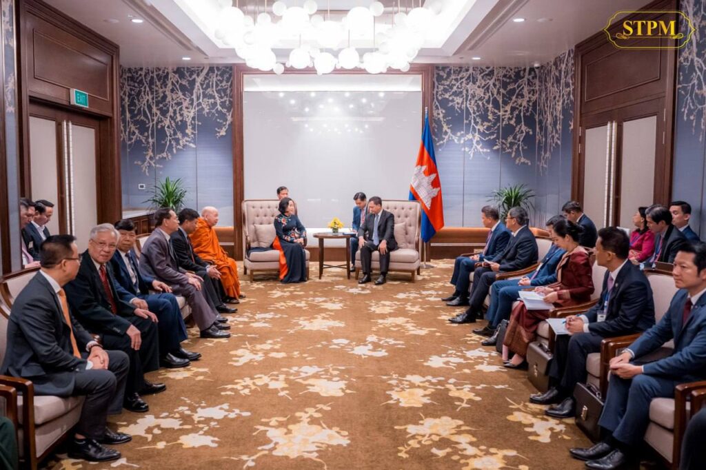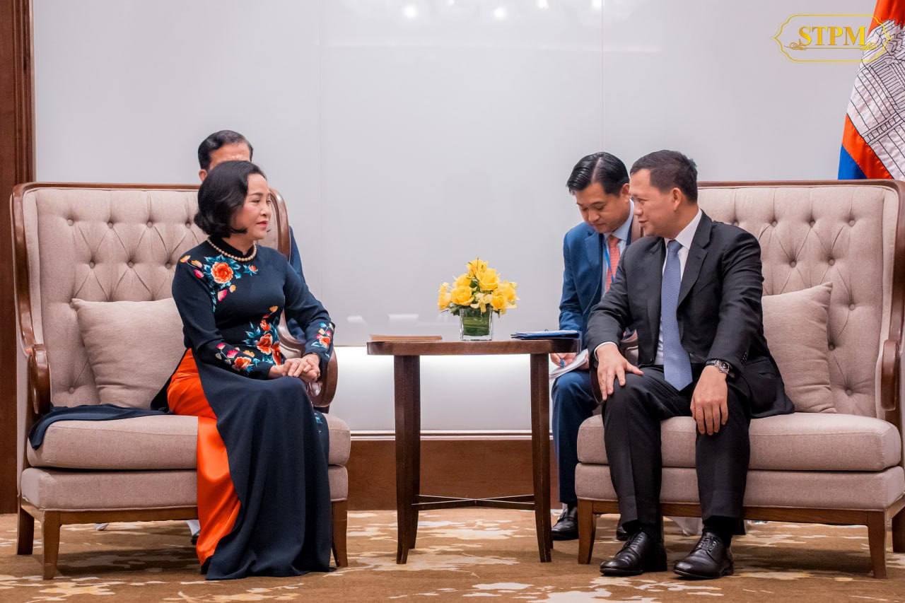 ហាណូយ៖ នារសៀលថ្ងៃទី១២ ខែធ្នូ ឆ្នាំ២០២៣ សម្តេច មហាបវរធិបតី ហ៊ុន ម៉ាណែត នាយករដ្ឋមន្ត្រី នៃព្រះរាជាណា ចក្រកម្ពុជា បានអនុញ្ញាតឱ្យលោកជំទាវ ង្វៀន ធី ថាញ់ (Nguyen Thi Thanh) ប្រធានសមាគមមិត្តភាព វៀតណាម-កម្ពុជា (VCFA) និងសហការី ចូលជួបសម្តែង ការគួរសម ក្នុងឱកាសនៃដំណើរបំពេញទស្សនកិច្ចផ្លូវការ រយៈពេលពីរថ្ងៃ ចាប់ពី១១ ដល់ថ្ងៃទី១២ ខែធ្នូ ឆ្នាំ២០២៣ នៅសាធារណរដ្ឋសង្គមនិយមវៀតណាម ។
