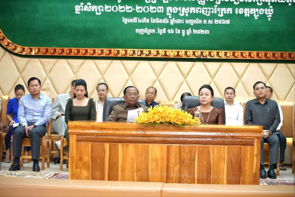 (ត្បូងឃ្មុំ)៖ ឯកឧត្តម វង សូត អនុប្រធានទី២រដ្ឋសភា និងលោកជំទាវ បានអញ្ជើញជួបសំណេះសំណាលជាមួយសិស្សានុសិស្ស និងនាំយករង្វាន់លើកទឹកចិត្ត ផ្តល់ជូនដល់សិស្ស ដែលប្រឡងជាប់សញ្ញាបត្រមធ្យមសិក្សាទុតិយភូមិ ឆ្នាំសិក្សា ២០២២-២០២៣ ចំនួន ៧១៥នាក់ ដែលមកពី៤វិទ្យាល័យក្នុងខេត្តត្បូងឃ្មុំ គឺវិទ្យាល័យក្រែក វិទ្យាល័យ ហ៊ុន សែនពញាក្រែក វិទ្យាល័យ ជាស៊ីម កណ្តោលជ្រុំ និងវិទ្យាល័យ ហេង សំរិនអន្លង់ជ្រៃ នាព្រឹកថ្ងៃទី ១៦ ខែធ្នូ ឆ្នាំ២០២៣ នៅសាលាស្រុកពញាក្រែក ខេត្តត្បូងឃ្មុំ ។