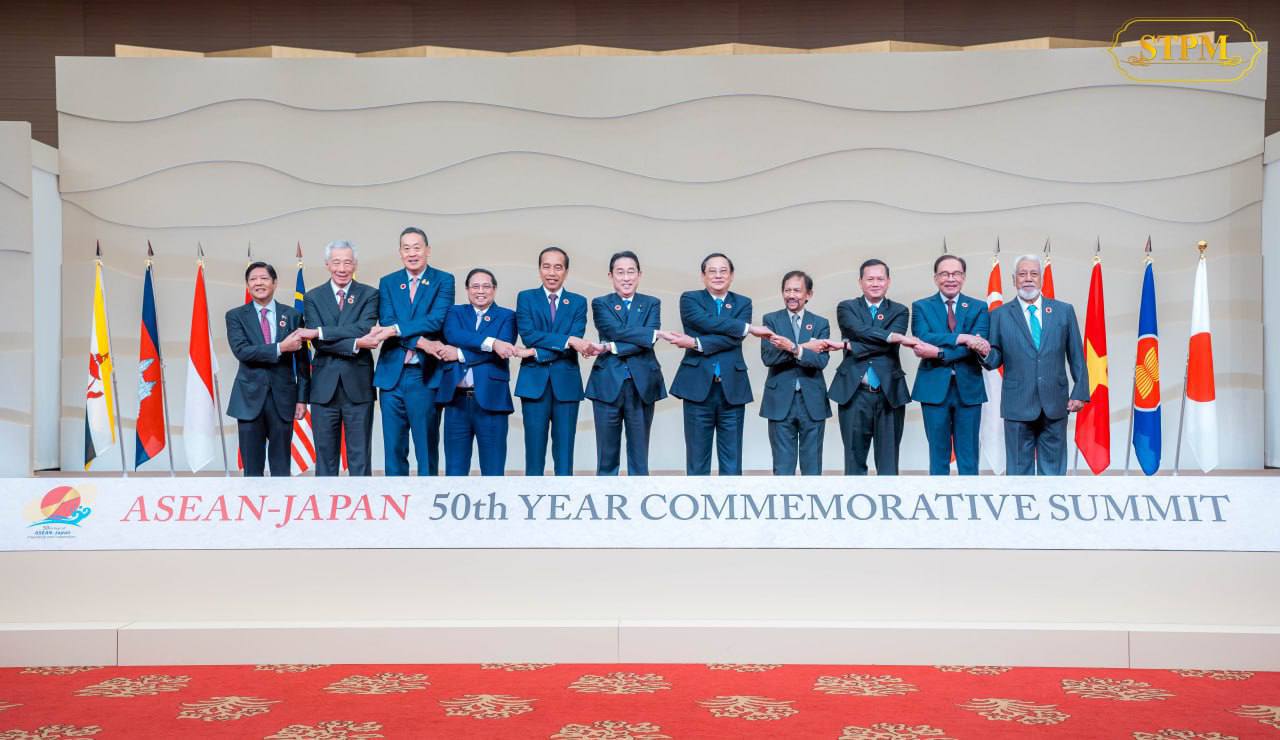 នៅក្នុងកិច្ចប្រជុំកំពូល រំលឹកខួបអាស៊ាន-ជប៉ុននេះ សម្ដេចធិបតីបាន វាយ តម្លៃខ្ពស់ចំពោះដំណើរដ៏វែងឆ្ងាយរបស់អាស៊ាននិងជប៉ុន ដែល ជាសក្ខីភាពបង្ហាញពីភាពរឹងមាំផ្អែកលើ «សាមគ្គីភាពក្នុងភាពចម្រុះ» និងបានគូសបញ្ជាក់ពីភាពចាំបាច់ក្នុងការរួមដៃគ្នា បង្ហាញនូវ «កម្លាំង នៃសន្តិភាព» ដែលប្រជាជាតិក្នុងតំបន់អាស៊ី ប៉ាស៊ីហ្វិកត្រូវរួមគ្នាធ្វើ ដើម្បីធានាថា តំបន់របស់យើងនឹងមិនក្លាយជា វេទិកាថ្មីមួយទៀតនៃ ជម្លោះប្រដាប់អាវុធ ឬសង្គ្រាមដោយតួអង្គតំណាងនោះឡើយ។ សម្ដេចធិបតី បានកោតសរសើរយ៉ាង ជ្រាល ជ្រៅ ចំពោះការគាំទ្ររបស់ ជប៉ុនក្នុងការអនុវត្តអាទិភាពទាំង ៤ នៃទស្សនវិស័យអាស៊ានស្តីពី ឥណ្ឌូប៉ាស៊ីហ្វិក (AOIP) រួមមានកិច្ច សហប្រតិបត្តិការលម្ហសមុទ្រ ការតភ្ជាប់គោលដៅអភិវឌ្ឍន៍ដោយចីរភាព កិច្ចសហប្រតិបត្តិការ សេដ្ឋកិច្ច និងកិច្ចសហប្រតិបត្តិការ នៅក្នុងវិស័យ ផ្សេងទៀត និង ត្រៀមខ្លួនជាស្រេចដើម្បីចូលរួមក្នុងការបង្កើនសហថាមពល និងប្រសិទ្ធភាពនៃកិច្ចសហប្រតិបត្តិការ រវាង AOIP និងចក្ខុវិស័យថ្មី របស់ជប៉ុនស្តីពីឥណ្ឌូប៉ាស៊ីហ្វិកសេរី និងបើកចំហ (FOIP)។