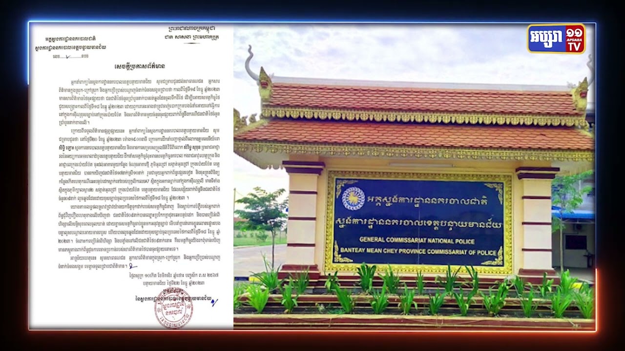 ស្នងការដា្ឋននគរបាលខេត្តបន្ទាយមានជ័យ បានចេញសេចក្តីប្រកាសព័ត៌មានមួយ បំភ្លឺតបជុំវិញហេតុការណ៍ដែលពាក់ព័ន្ធអំពើសង្ស័យជួញដូរមនុស្សមួយកើតឡើង នៅក្នុងតំបន់កាស៊ីណូ លើទឹកដីកម្ពុជា ក្នុងខេត្តបន្ទាយមានជ័យ។