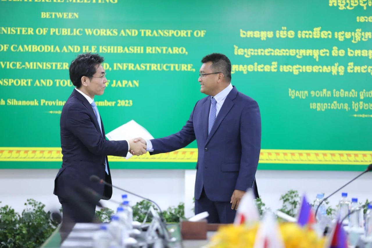 ការសន្យារបស់ភាគីជប៉ុន តាមរយៈជំនួបទ្វេភាគីរវាងឯកឧត្តម ប៉េង ពោធិ៍នា រដ្ឋមន្ត្រីក្រសួងសាធារណការ និងដឹកជញ្ជូន និងឯកឧត្តម អ៊ិស៊ិបាស៊ិ រីនតារ៉ូ (H.E. Mr. ISHIBASHI Rintaro) អនុរដ្ឋមន្ត្រីក្រសួងដែនដី ហេដ្ឋារចនាសម្ព័ន្ធ ដឹកជញ្ជូន និងទេសចរណ៍ នៃប្រទេសជប៉ុន ដែលបានប្រព្រឹត្តទៅនៅសាលប្រជុំកំពង់ផែស្វយ័តក្រុងព្រះសីហនុ កាលពីថ្ងៃទី២២ខែធ្នូ ឆ្នាំ ២០២៣។