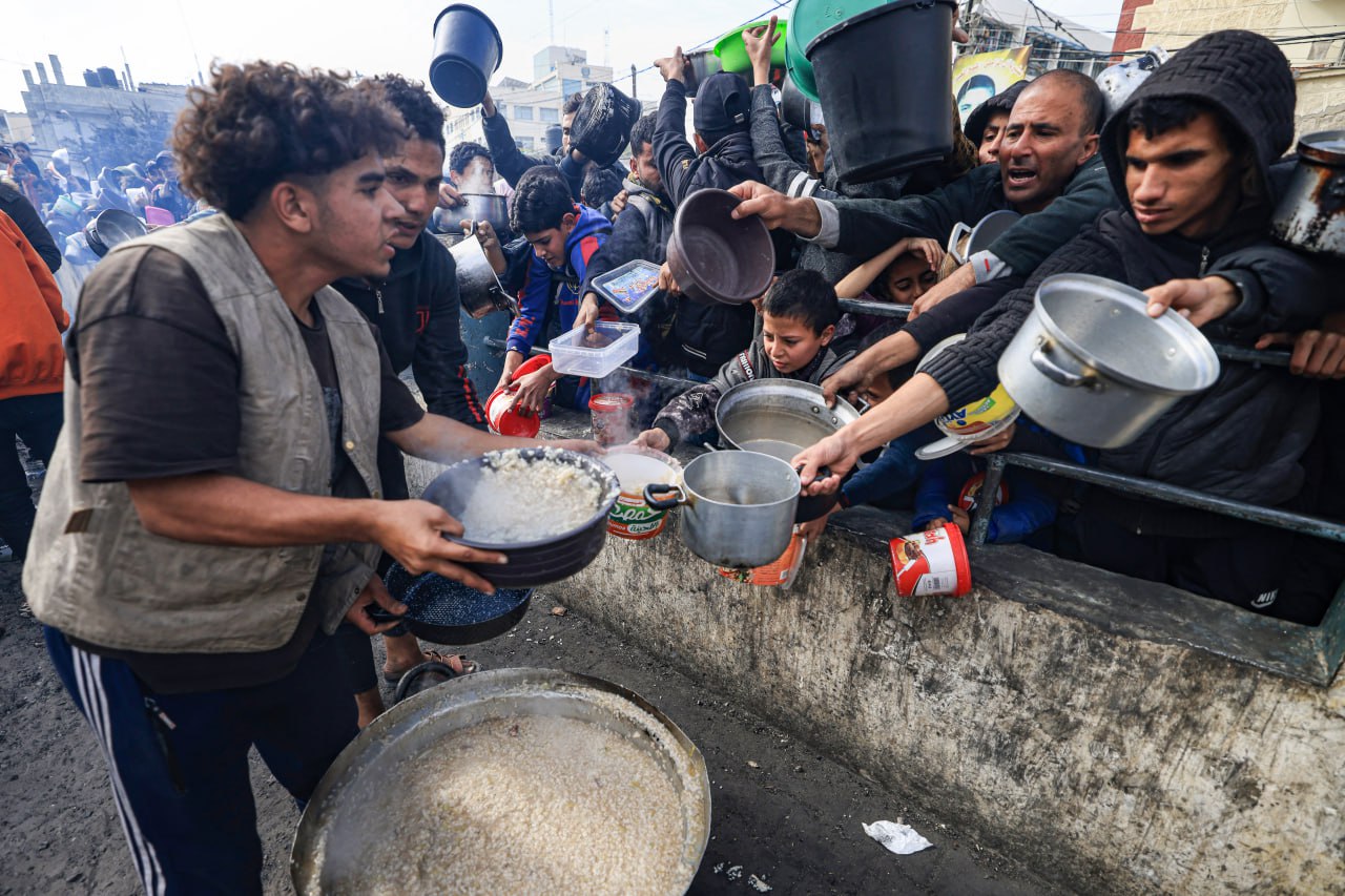 ប្រជាជនប៉ាឡេស្ទីនរាប់ពាន់នាក់ឈររង់ចាំសុំអាហារ ដើម្បីចិញ្ចឹមក្រពះ និងគ្រួសារ នៅផ្លូវមួយក្នុងទីក្រុងរ៉ាហ្វា ក្នុងតំបន់ហ្គាហ្សាស្រ្ទីប ភាគខាងត្បូង ដោយទិដ្ឋភាពដ៏ឱ្យគួរសោកសង្រែកនេះ បានឆ្លុះបញ្ចាំងពីវិបត្តិមនុស្សធម៌ និងតម្រូវការសន្តិភាពបន្ទាន់។