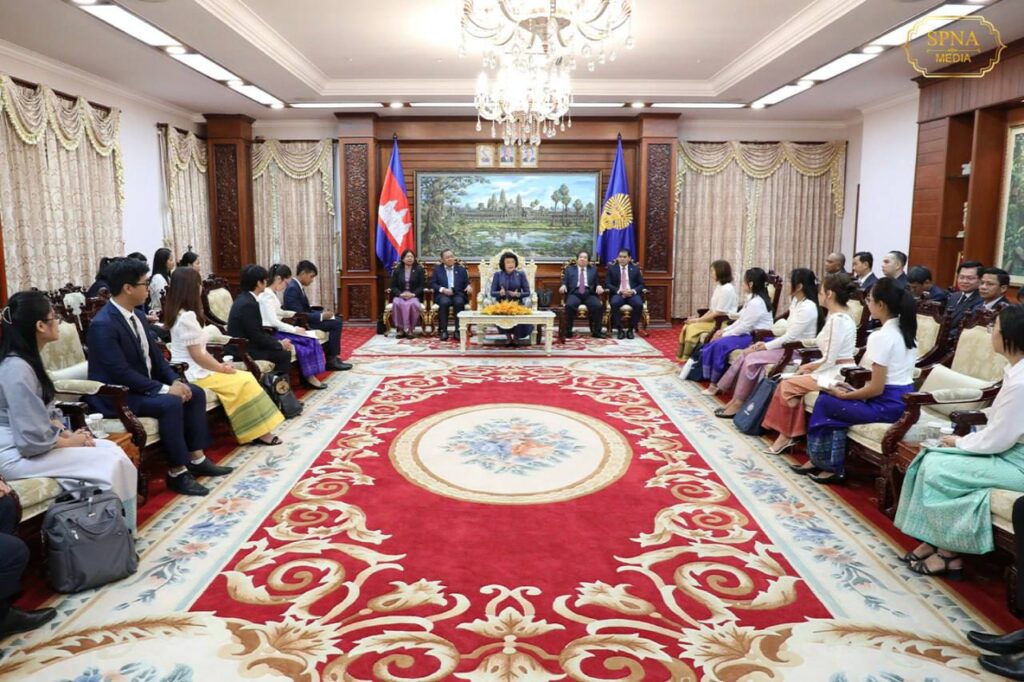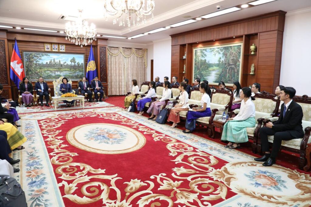 ភ្នំពេញ៖ សម្តេចមហារដ្ឋសភាធិការធិបតី ឃួន សុដារី ប្រធានរដ្ឋសភានៃព្រះរាជាណាចក្រកម្ពុជា បានទទួលជួបសំណេះសំណាលជាមួយនិស្សិតជ័យលាភីអាហារូបករណ៍រដ្ឋាភិបាលអូស្រ្តាលីក្រោយឧត្តមសិក្សា(Australia Awards Scholarship) សម្រាប់ឆ្នាំសិក្សាឆ្នាំ២០២៤ នាព្រឹកថ្ងៃទី២៦ ខែធ្នូ ឆ្នាំ២០២៣ នៅវិមានរដ្ឋសភា។