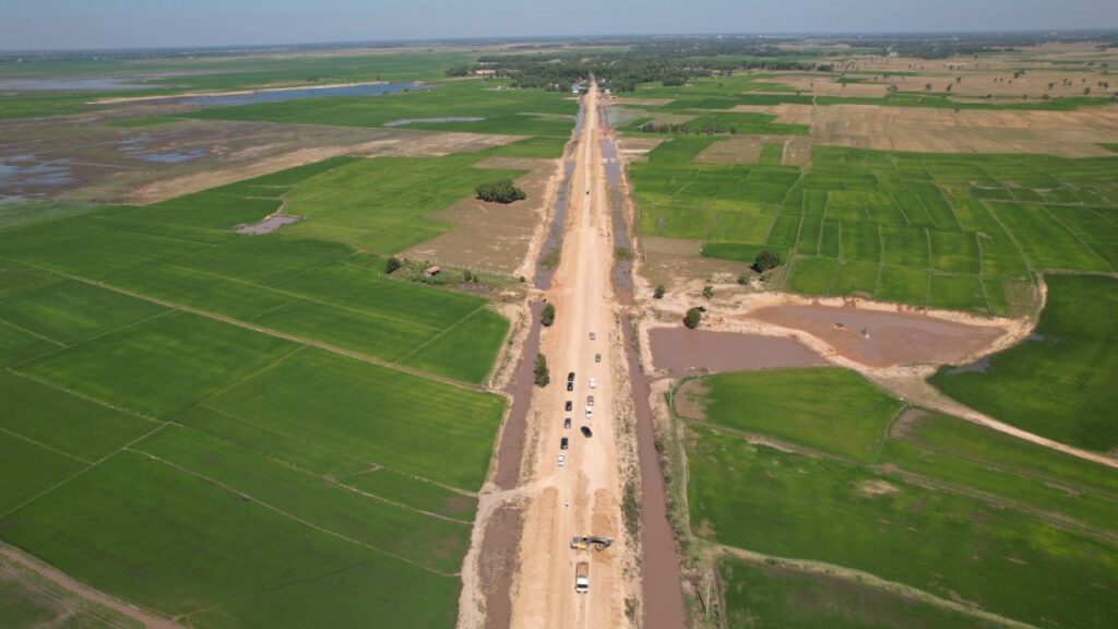 បន្ទាប់ពីបញ្ចប់ពិធីសំណេះសំណាលឯកឧត្តមរដ្ឋមន្រ្តី បានដឹកនាំ គណៈ ប្រតិភូចុះពិនិត្យវឌ្ឍនភាពការងារសាងសង់ផ្លូវជនបទក្រាលកៅស៊ូពីរជាន់ប្រភេទ DBSTប្រវែង ១៣ ៣៦៨ម៉ែត្រ របស់គម្រោងកែ លម្អផ្លូវ ជនបទជំហានទី៣ នៃក្រសួងអភិវឌ្ឍន៍ជនបទ ចាប់ពីភូមិកែវជះ ឃុំបន្ទាយក្រាំង ស្រុកកំពង់រោទិ៍ ទៅបាយ៉ាប ឃុំបាសាក់ ស្រុកស្វាយជ្រំ ខេត្តស្វាយរៀង ។បច្ចុប្បន្នអនុវត្តសម្រេចបាន ១៥ភាគរយ៕