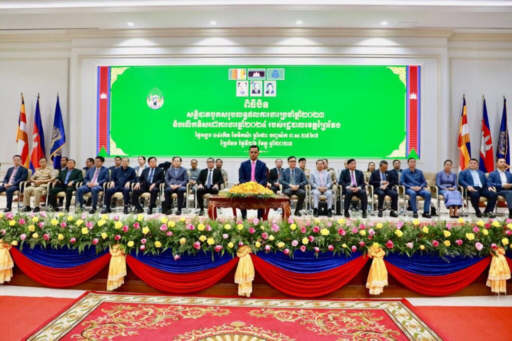 ព្រៃវែង៖ ក្នុងពិធីបិទសន្និបាតបូកសរុបការងារប្រចាំឆ្នាំ២០២៣ និងលើកទិសដៅការងារឆ្នាំ២០២៤ របស់រដ្ឋបាលខេត្តព្រៃវែង នាថ្ងៃអង្គារ ទី២៦ ខែធ្នូ ឆ្នាំ២០២៣ ឯកឧត្តម អភិសន្តិបណ្ឌិត ស សុខា ឧបនាយករដ្ឋមន្ត្រី រដ្ឋមន្ត្រីក្រសួងមហាផ្ទៃ មានប្រសាសន៍ថា ការងារការពារសន្តិភាព និងពង្រឹងខឿនសន្តិសុខជាតិឲ្យបានរឹងមាំកងកម្លាំងនគរបាលជាតិគឺជាកងកម្លាំងស្នូលនិងជាបំណែកដល់ប្រជាពលរដ្ឋនៅមូលដ្ឋានក្នុងការទប់ស្កាត់អំពើភារវកម្មឧក្រិដ្ឋកម្មឆ្លងដែនគ្រប់ប្រភេទជាពិសេសបទល្មើសសម្អាតប្រាក់ភេរវកម្ម បច្ចេកជាវិទ្យា គ្រឿងញៀននិងអំពើជួញដូរមនុស្សគ្រប់ទម្រង់ ការពារអធិបតីភាពជាតិបូរណៈភាពទឹកដីនិងបន្តចំរុញការសហការដើម្បីរក្សាបាននូវព្រំដែនសន្តិភាពមិត្តភាពសហប្រតិបត្តិការនិងប្រឆាំងរៀងរាល់កម្មភាពដែលលួចឆ្លៀតឱកាសប្រើប្រាស់ទឹកដីកម្ពុជាធ្វើជាមូលដ្ឋាននៅក្នុងការប្រឆាំងជាមួយប្រទេសជិតខាង ។