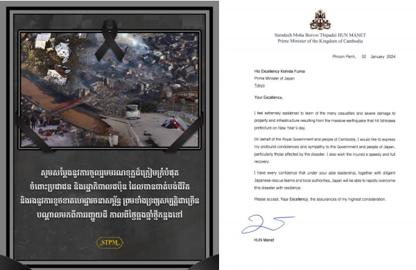 សាររំលែកទុក្ខ និងសោកស្តាយចំពោះការបាត់បង់ជីវិតប្រជាជនជប៉ុន