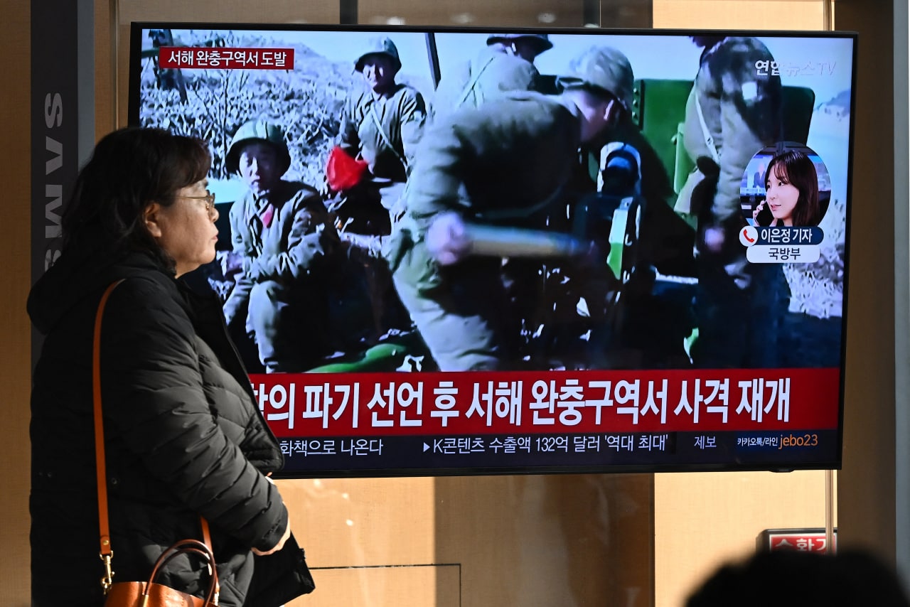 តាមរយៈអេក្រង់ទូរទស្សន៍ ប្រជាពលរដ្ឋកូរ៉េខាងត្បូងកំពុងតាមដានការផ្សាយព័ត៌មាន ទាក់ទងនឹងការបាញ់កាំភ្លើងធំរបស់កូរ៉េខាងជើង នៅឯស្ថានីយរថភ្លើង ក្នុងទីក្រុងសេអ៊ូល កាលពីថ្ងៃទី ៥ ខែមករា ឆ្នាំ ២០២៤៕