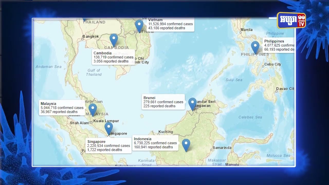 គិតសរុបរួមនៃប្រទេសទាំង១០ អាស៊ាននាពេលនេះ ការឆ្លងសរុបបានកើនដល់ចំនួន ៣៦លាន ៧២ម៉ឺន ៣ពាន់ ៨៩៧ករណីហើយ, និងការស្លាប់សរុបមានចំនួន ៣៦ម៉ឺន ៩ពាន់ ២៦៩នាក់។ បើគិតសរុបនៅលើសាកលលោកនោះវិញ ការឆ្លងវីរុសកូវីដ១៩ សរុបមានចំនួនជាង ៧០១លានករណីហើយ, និងការស្លាប់មានជាង ៦លាន ៩៦ម៉ឺននាក់៕