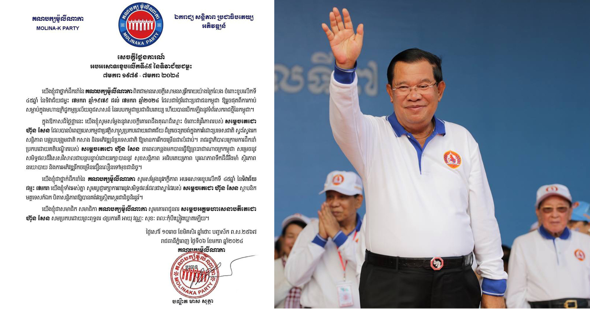 គណបក្សម៉ូលីណាកា សម្តែងនូវការដឹងគុណចំពោះគំរូវីរភាពរបស់សម្តេចតេជោ ហ៊ុន សែន រំដោះប្រជាជនកម្ពុជាឱ្យរួចផុតពីការកាប់សម្លាប់ក្នុងមហាឧក្រិដ្ឋកម្មប្រល័យពូជសាសន៍