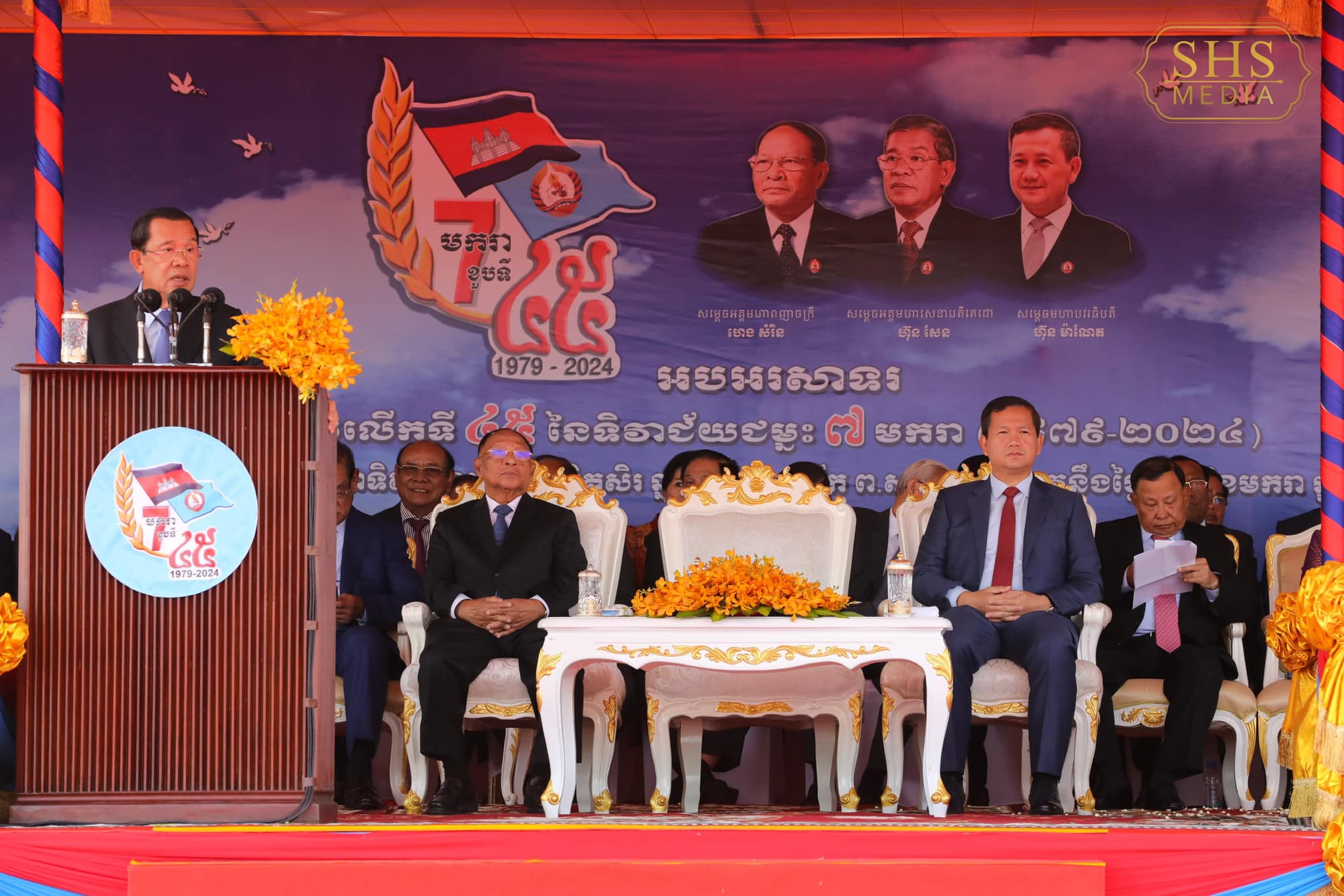 សម្តេចតេជោបានបន្តថា តាមរយៈបណ្ដាសមិទ្ធផលជាប្រវត្តិសាស្ត្រដែលយើងសម្រេចបានទាំងអស់នេះ បានបង្ហាញច្បាស់ថា កម្ពុជាបាននិងកំពុងឈានទៅមុខតាមមាគ៌ាមួយដ៏ត្រឹមត្រូវ ដែលឆ្លើយតបទៅនឹងបំណងប្រាថ្នារបស់ប្រជាជន និងស្របជាមួយនឹងសភាពការណ៍ជាក់ស្ដែងទាំងនៅក្នុងប្រទេស ទាំងនៅក្រៅប្រទេស។ ព្រមជាមួយនោះ ក៏បានឆ្លុះបញ្ចាំងឱ្យឃើញច្បាស់នូវការចូលរួមរបស់ប្រជាជនកម្ពុជាគ្រប់ស្រទាប់ គ្រប់ជនជាតិ និងគ្រប់ជំនឿសាសនា មន្ត្រីរាជការ កងកម្លាំងប្រដាប់អាវុធ យុវជន កម្មករ កសិករ អាជីវករ ព្រះសង្ឈ បព្វជិតនៃសាសនានានា បញ្ញវន្ដ វិនិយោគិន និងមជ្ឈដ្ឋានចម្រើនជឿនលឿនទាំងឡាយក្នុងសង្គម ប្រកបដោយមនសិការស្នេហាជាតិយ៉ាងជ្រាលជ្រៅ ដើម្បីឧត្តមប្រយោជន៍នៃប្រទេសជាតិ។ ជោគជ័យ និងការសប្បាយរីករាយរបស់ប្រជាជនកម្ពុជាយើងនៅថ្ងៃនេះ គឺពិតជាផ្តើមចេញពីជ័យជម្នះ៧មករា បើគ្មានជ័យជម្នះ៧មករា យើងពិតជាមិនអាចមានអ្វីៗដូចថ្ងៃនេះឡើយ នេះជាសច្ចធម៌ប្រវត្តិសាស្ត្រ។