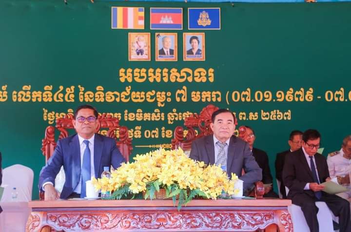 ឯកឧត្តម ញ៉ែម សំអឿន អភិបាលខេត្ត បានអានសុន្ទរកថា សម្តេចអគ្គមហាសេនា បតី តេជោ ហ៊ុន សែន ប្រធានក្រុមឧត្តមប្រឹក្សាផ្ទាល់ ព្រះមហាក្សត្រ នៃព្រះរាជា ណា ចក្រកម្ពុជា និងជាប្រធានគណបក្សប្រជាជនកម្ពុជា ក្នុងពិធីមីន្ទីញរំឭកខួបលើកទី ៤៥ នៃទិវាជ័យជម្នះ ៧.មករា.១៩៧៩-០៧.មករា.២០២៤ ដោយសុន្ទរកថា បាន លើកឡើងថា ថ្ងៃ ៧ មករា ឆ្នាំ ១៩៧៩ គឺជាទិវាមហាជ័យជំនះរបស់ប្រជាជន កម្ពុជា លើបនប្រល័យពូជសាសន៍ ប៉ុល ពត។ កម្ពុជាបានបិទនូវទំព័រសករាជដ៏ខ្មៅងងឹត របស់ខ្លួន ហើយបើកចេញនូវទំព័រសករាជថ្មី គឺសករាជឯករាជ្យ សេរីភាព ប្រជាធិប តេយ្យ និងវឌ្ឍនភាពសង្គម។ ប្រជាជនកម្ពុជា បានប្រសិទ្ធនាមថ្ងៃ ៧ មករា ឆ្នាំ១៩៧៩ ថាជាថ្ងៃកំណើតទី២របស់ខ្លួន ហើយកំណត់នូវគោលជំហរយ៉ាង ច្បាស់ ថា “បើគ្មានថ្ងៃ៧ មករា ឆ្នាំ ១៩៧៩ ទេនោះ យើងនឹងគ្មានអ្វីៗទាំងអស់ នៅថ្ងៃនេះ “។