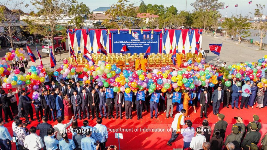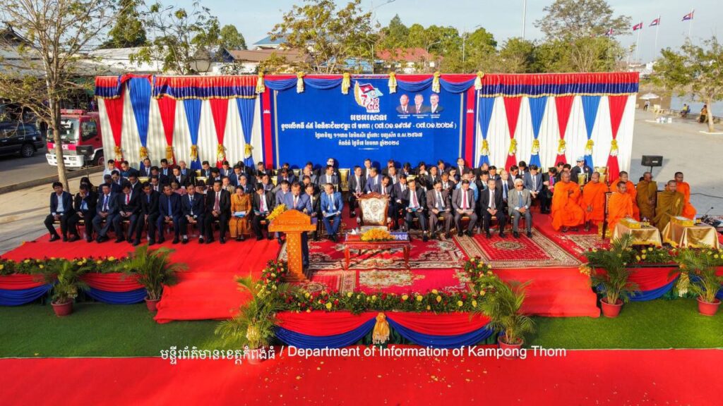 កំពង់ធំ ៖ឯកឧត្តមបណ្ឌិត ថោង ខុន សមាជិកគណៈកម្មាធិការកណ្ដាល និងជា ប្រ ធាន ក្រុមការងារគណបក្សចុះមូលដ្ឋានខេត្តកំពង់ធំ បានថ្លែងថាខួបអនុស្សាវរីយ៍ ៤៥ឆ្នាំ នៃទិវាជ័យជម្នះ ៧ មករា កម្ពុជាសម្រេចបានសមិទ្ធផលធំៗជាច្រើនលើគ្រប់ វិស័យ ពិសេសកំពុងបន្តទៅមុខប្រកបដោយភាពជឿជាក់លើមាគ៌ាសន្តិភាព ប្រជាធិប តេយ្យ និងអភិវឌ្ឍន៍ ជាមួយនឹងការលេចត្រដែតឡើងនូវកិត្យានុភាពរបស់កម្ពុជា លើឆាក អន្តរជាតិ។