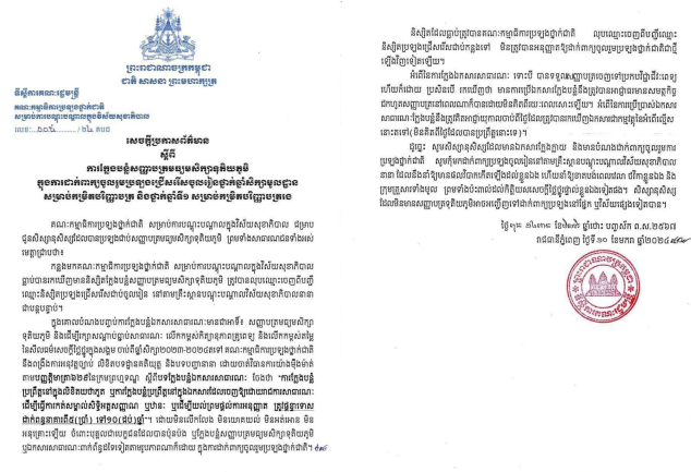 ក្រសួងអប់រំបញ្ជាក់ពី ការក្លែងបន្លំសញ្ញាបត្របាក់ឌុប ក្នុងការដាក់ពាក្យប្រឡង ជ្រើសរើសចូលរៀនថ្នាក់ឆ្នាំសិក្សាមូលដ្ឋាន