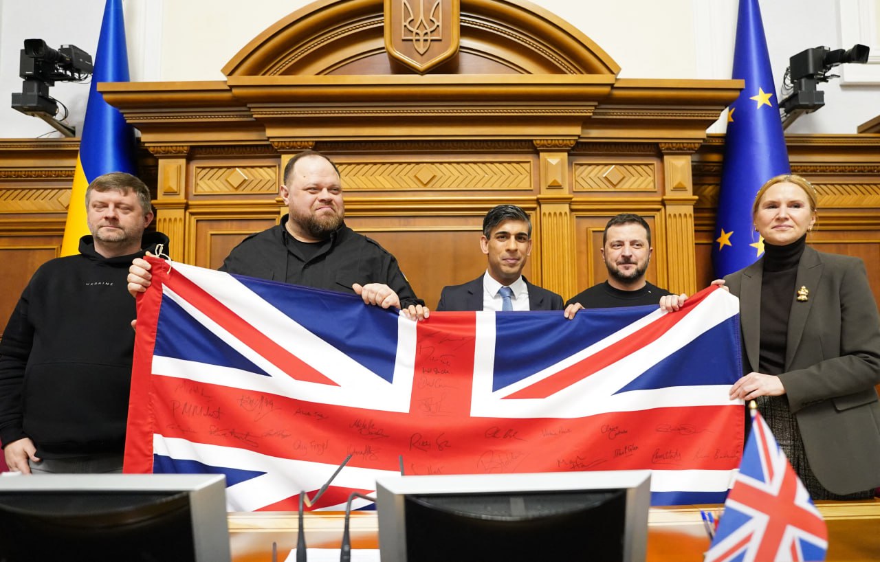 នាយករដ្ឋមន្ត្រីអង់គ្លេស លោក រីសស៊ី ស៊ូណាក់ បានធ្វើដំណើរមកដល់ទីក្រុងគៀវ ហើយជួបជាមួយប្រធានាធិបតីអ៊ុយក្រែន លោក វ៉ូឡូឌីមៀ ហ្សេលេនស្គី ក្នុងថ្ងៃសុក្រសប្តាហ៍នេះ ខណៈដែលអង់គ្លេសប្រកាសផ្តល់ជំនួយយោធាថ្មីចំនួន ២,៥ពាន់លានផោន ឬប្រមាណ ៣,២ពាន់លានដុល្លារសម្រាប់អ៊ុយក្រែន។ នាឱកាសនោះដែរ លោក ហ្សេលេនស្គី បានសាទរចំពោះកញ្ចប់ជំនួយយោធាចំនួន ៣.២ពាន់លានដុល្លាររបស់អង់គ្លេសសម្រាប់អ៊ុយក្រែន ខណៈដែលលោក ស៊ូណាក់ សន្យាថា នឹងបន្តឈរជាមួយអ៊ុយក្រែន ក្នុងការប្រយុទ្ធប្រឆាំងនឹងរុស្ស៊ី។